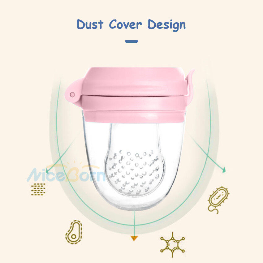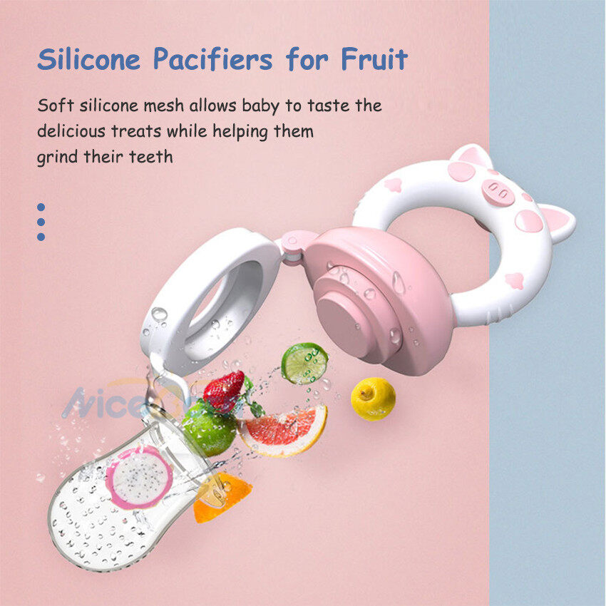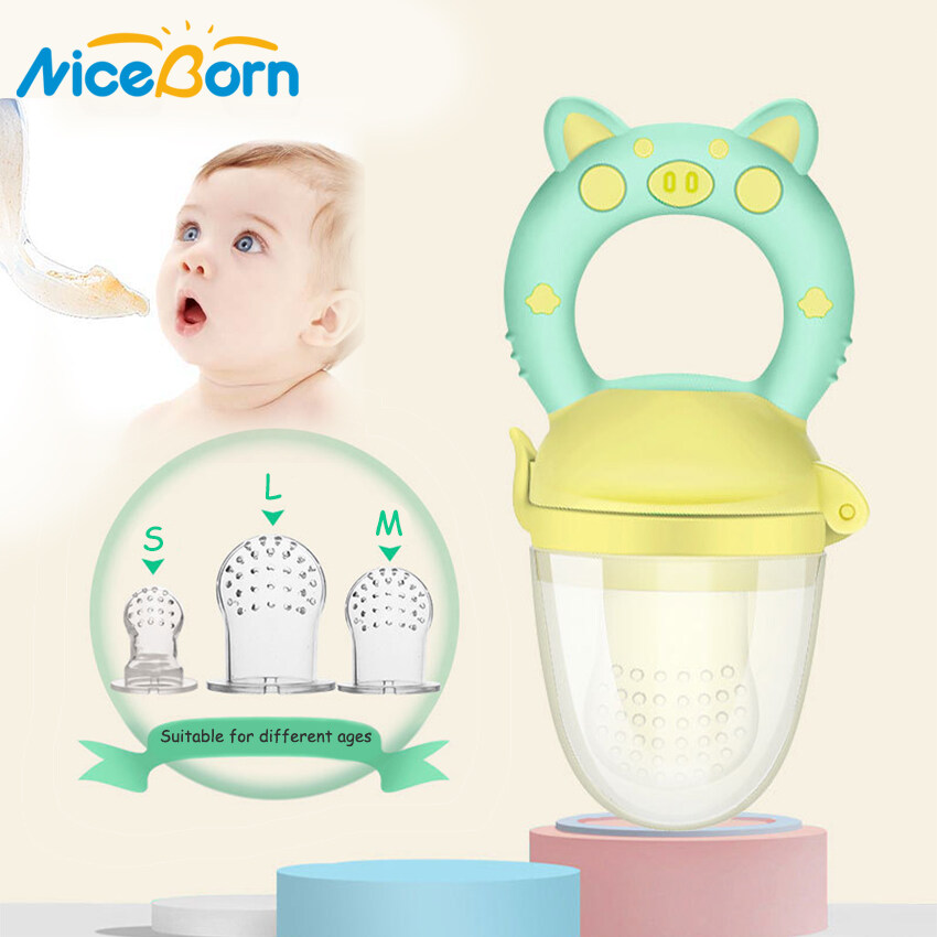 NiceBorn Baby Pacifier Fresh Food Feeder Newborn Infant Soother Fresh Fruit Milk Nibbler Safety Silicone BPA Free Toddlers 3 Different Sized Silicone Teething Pacifiers