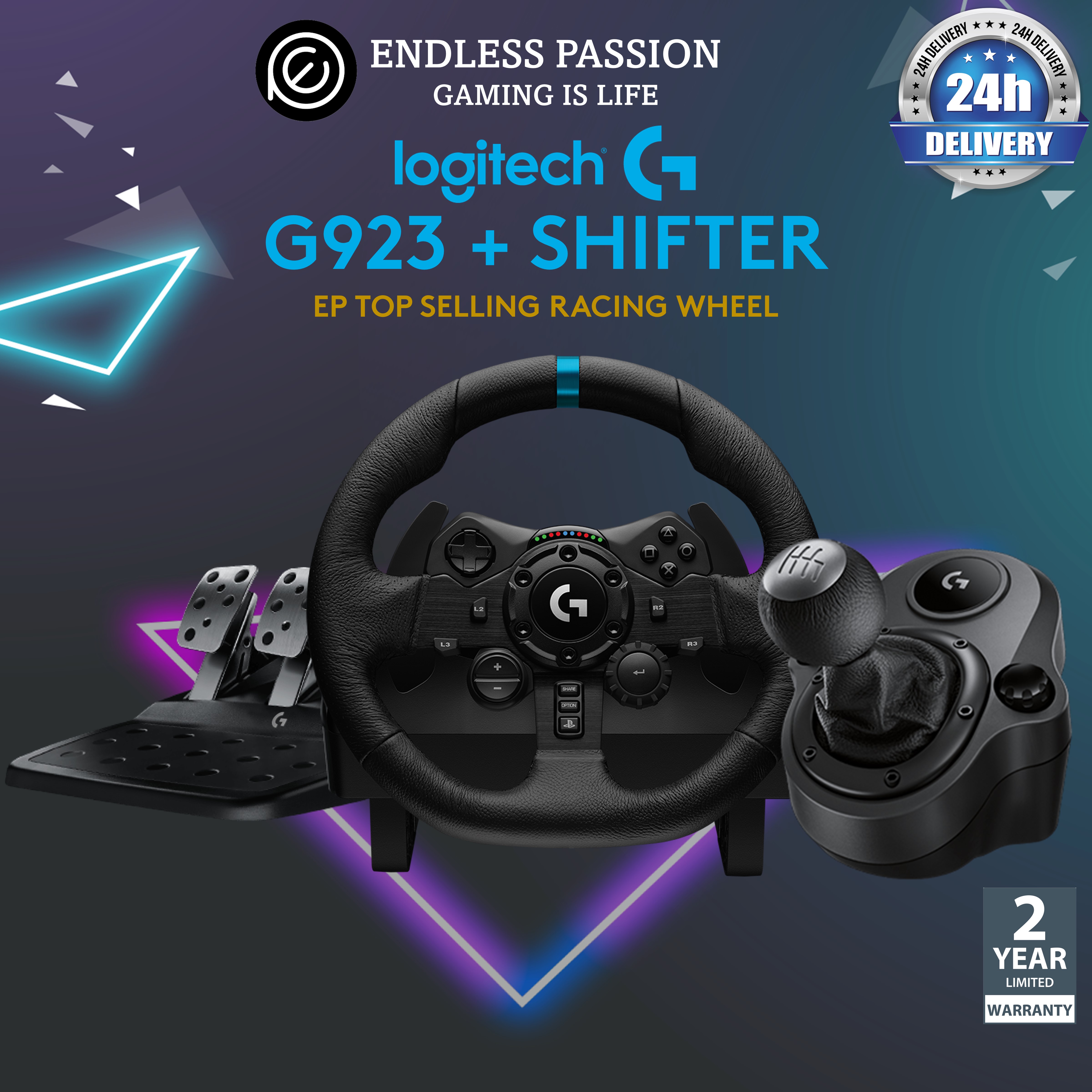 Logitech G923 Racing Wheel and Pedals for Playstation PS4 and PC, TRUEFORCE 1000 Hz Force Feedback, Responsive Driving Design, Dual Clutch Launch Control, Genuine Leather Wheel Cover [24 hours deliver