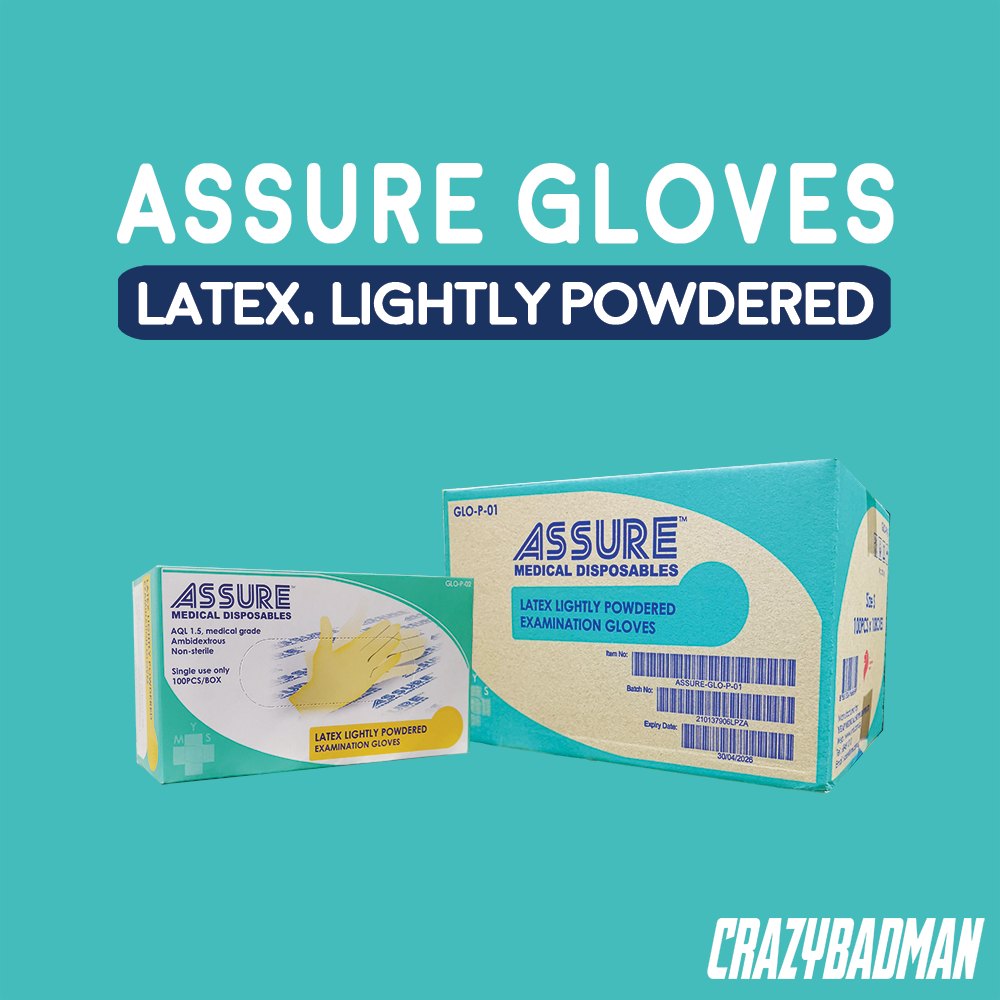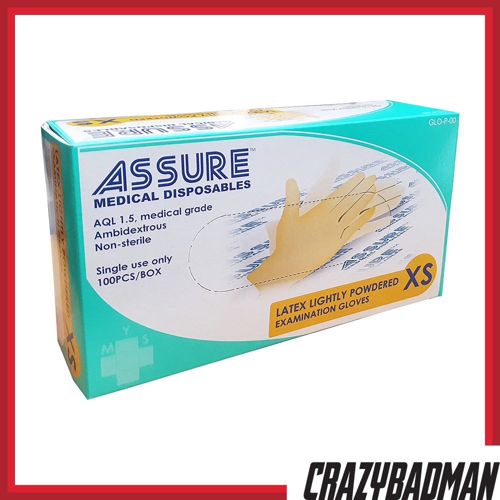 ASSURE Latex Gloves are manufactured in the highest required quality of AQL 1.5 Acceptable Quality Level (AQL), ambidextrous and perfect for examination purposes. Made from 100% Natural Rubber Latex.