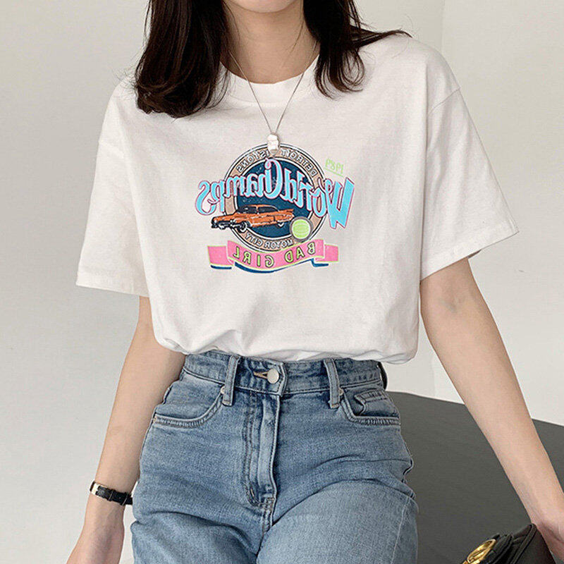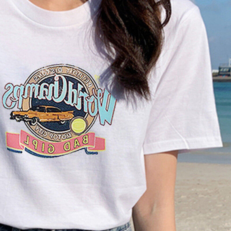 • INWPLLR Casual All-match Women's Tops Letters Printing T-Shirts Summer Style Short Sleeve Women T-Shirt Newest Korean Cotton Tshirts Female
