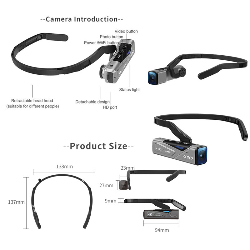 ORDRO EP7 4K 60fps Full HD Head Mounted Vlog Camera Gimbal Anti-Shake Recorder WiFi APP Control Camcorder