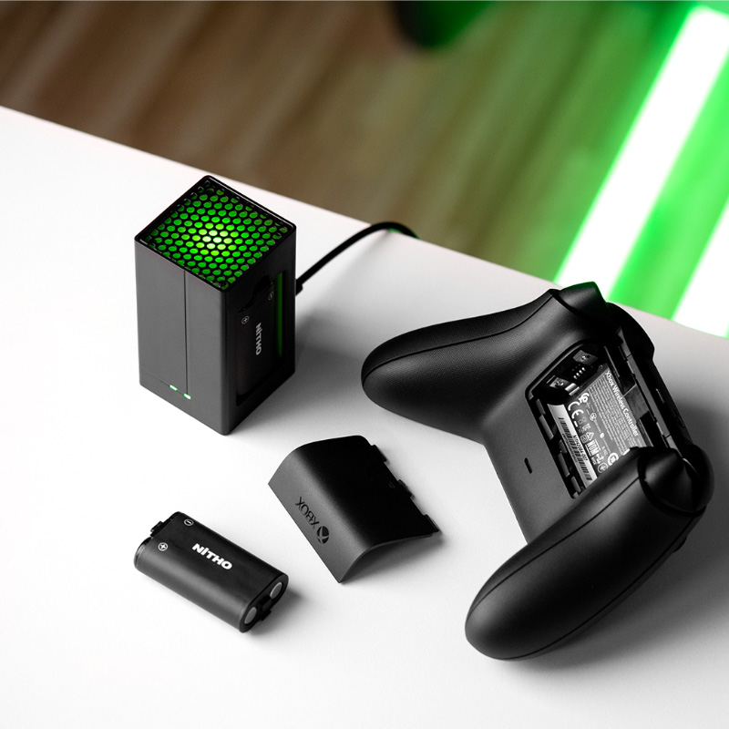 Charging status dual colour LEDs indicate when the battery packs are fully charged and ready to be used on the Xbox® controllers