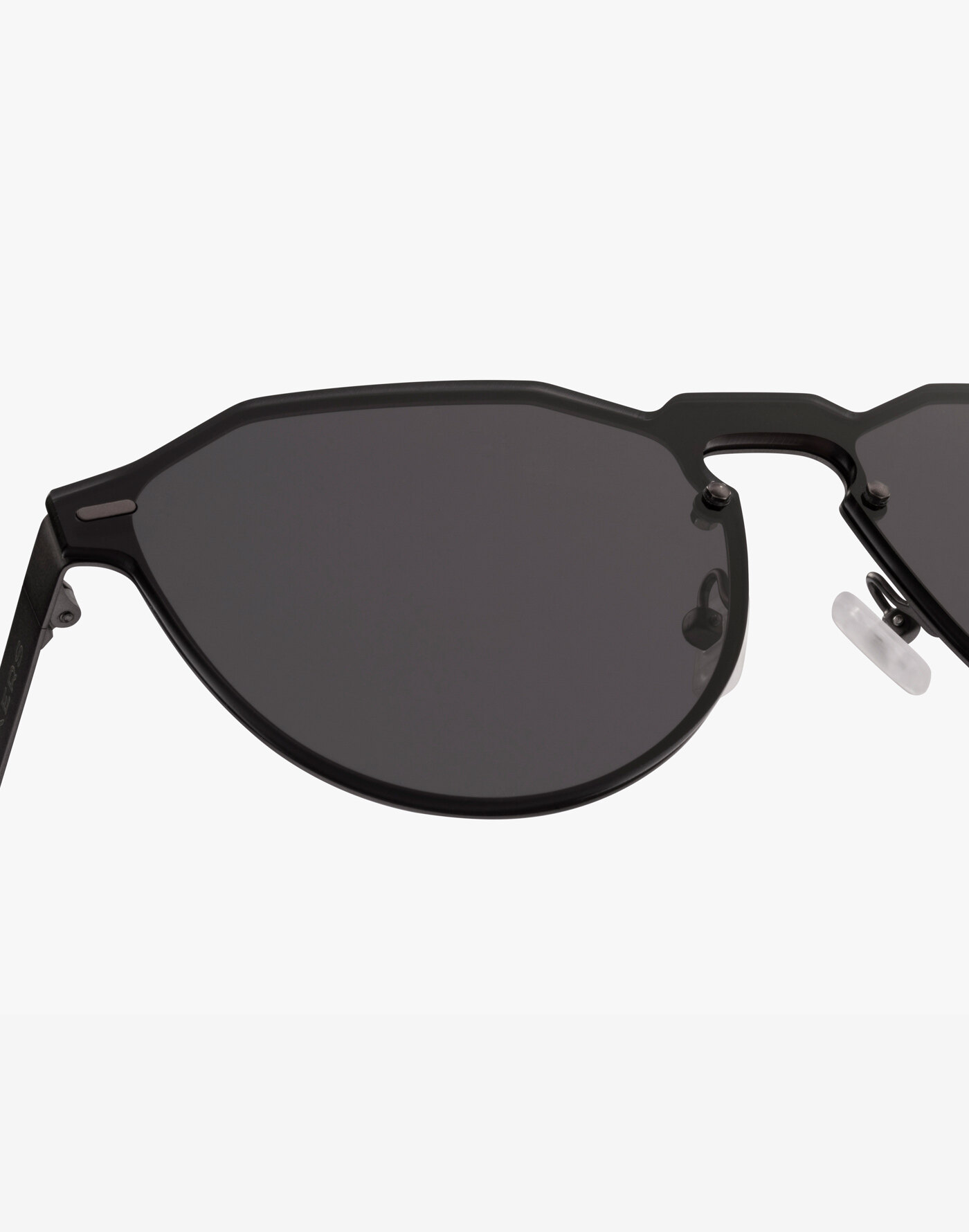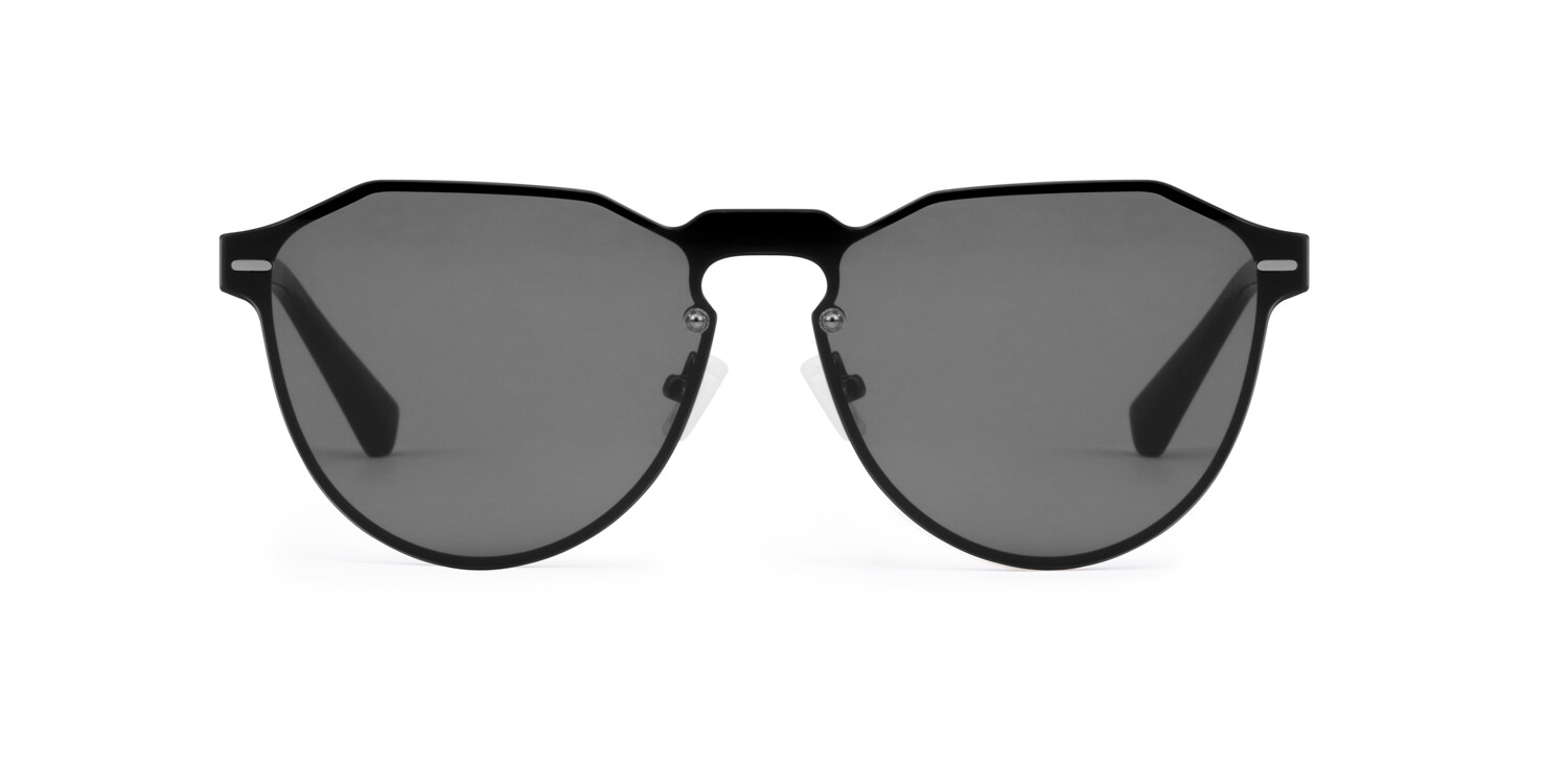 Warwick-style full front sunglasses with matte graphite metallic frame and black shield lenses. No gender model Nylon lenses which offer improved sharpness and resistance for greater optical performance Category 3 lenses with UV400 protection which offer superior antiglare protection Base curve 2 nearflat frame front Nickelfree stainless steel frame front for high corrosion resistance and increased strength Antislip, antiallergy silicon nose pads 3 barrel hinge for improved grip and durability Temples made of TR90 from EMS, considered the best nylon in the world for eyewear frames greater flexibility and resistance Size: Front 13,8 cm, Height 5 cm, Temples: 14 cm Includes: Microfiber cover, box and set of decorative stickers
