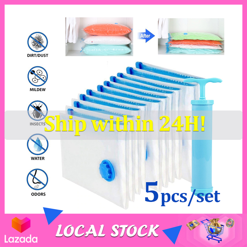 Vacuum Bag 5Pcs/set Transparent Clothes Quilt Seal Compression Storage Bag Resealable Luggage Vacuum Storage Bags Travel Household Storage Sack