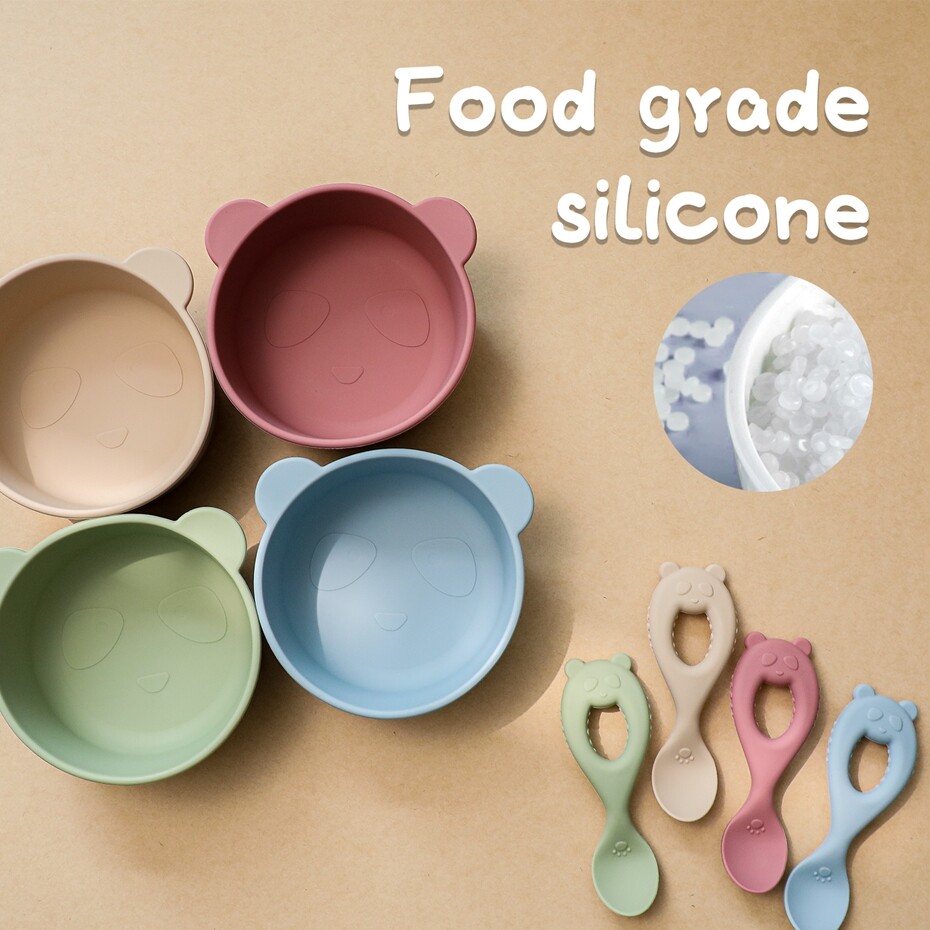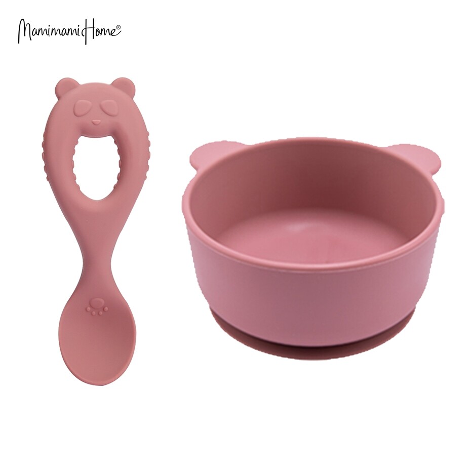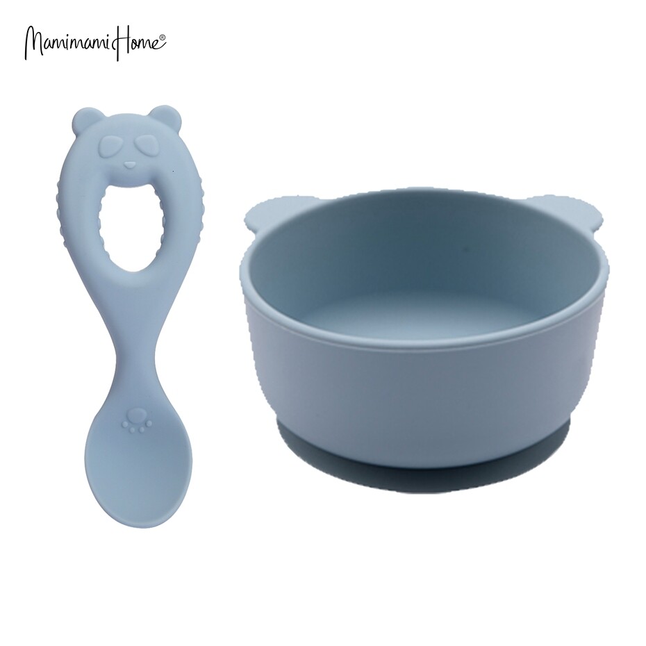 Mamimami Home Baby Bowl Set BPA Free Silicone Feeding Suctiom Bowl with Panda Spoon