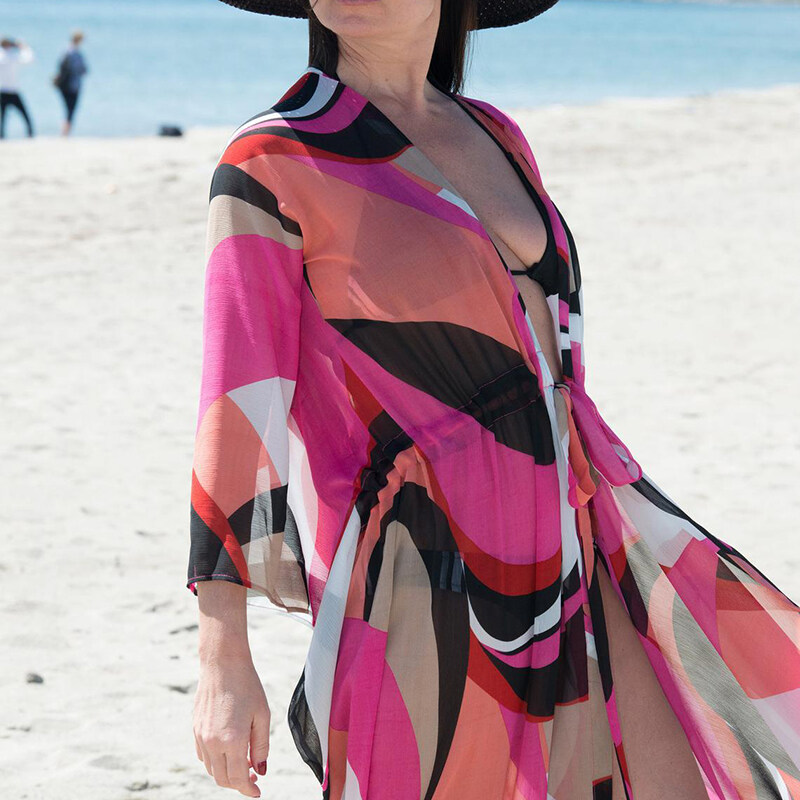 2023 Chiffon Printing Beach Cover Up Tunic Women Drawstring Beach Cardigans Colorful Maxi Dress Bikini Cover Ups