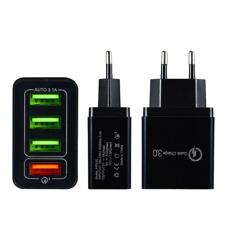 SG Stock | Quick 3.0 Wall 4 Port USB Fast Charging Portable Adapter UK EU Plug