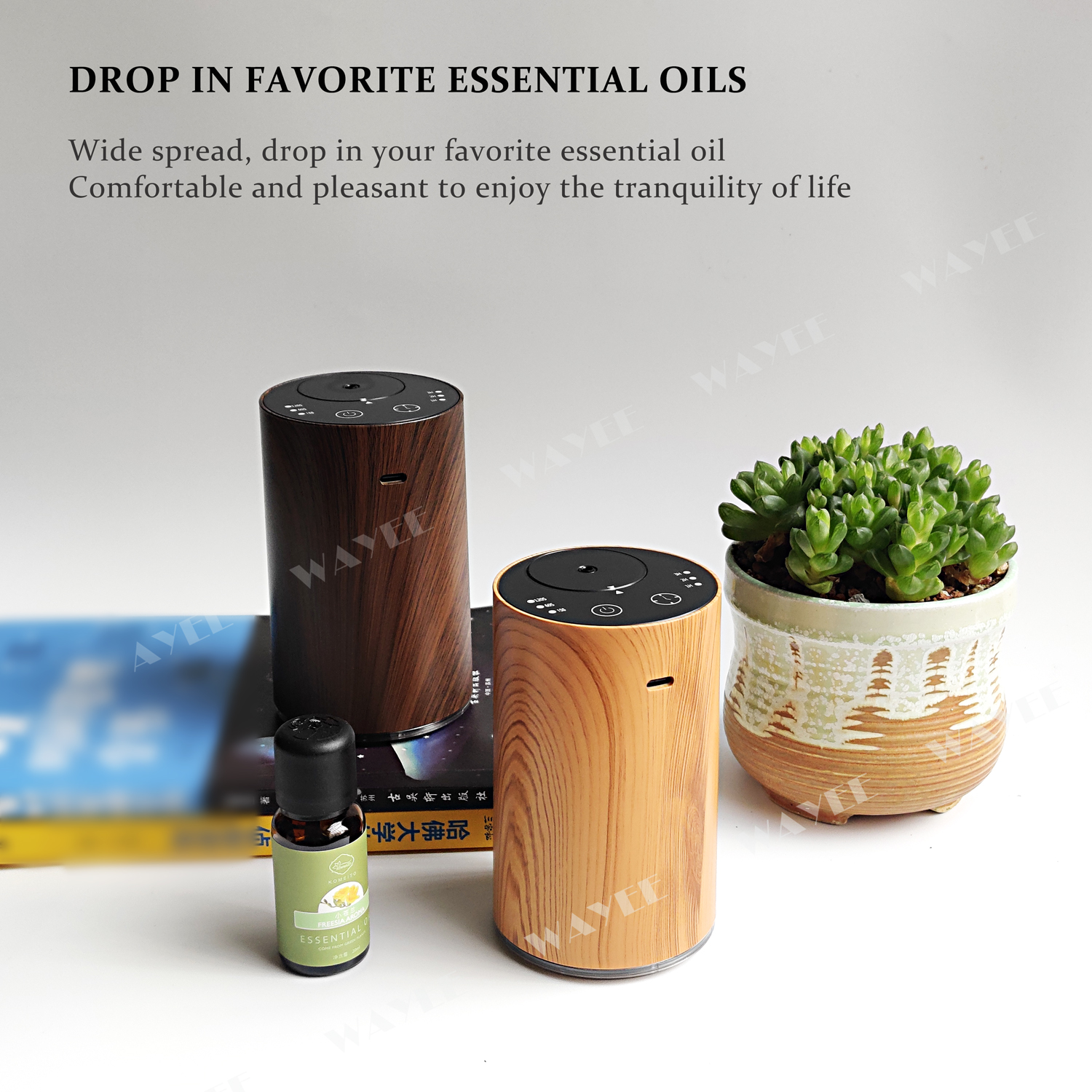 Warning&Caution 1. Use input voltage DC5V, computer USB interface, USB interface adapter or car charger with USB interface(please choose the certified charger from branded manufacturer). 2. After the product is installed and used, it cannot be turned over or titledfor a long time. 3. There is an anti-tilting device inside the machine, shaking will make sounds; this is normal. 4.Only need to fill half a bottle of essential oil when you use it. If it is full,the essential oil will leak out when the machine is dumped. FQC 1. How long does it take to fully charge the battery? Answer: 4~6 hours. 2. What kind of essential oil does the product use instructions? Answer: It is recommended to use pure plant essential oils or essential oils that are volatile without impurities and are not viscous. 3. Can't see the amount of mist when the product is turned on? Answer: a. This is a normal phenomenon. The product itself has the function of automatically adjusting the atomized particles. To save essential oils to the greatest extent; b. The atomized particles are only 1~3 nanometers, which is difficult to catch with the naked eye. 4. About the fragrance? Answer: The scent concentration of each essential oil is different. When the machine is running, use your lips to approach the nozzle and feel gas coming out.Indicates that the machine is operating normally; some essential oils will have a weaker smell. Influencing the aromatherapy effect of essential oils, as long as the essential oil molecules diffuse in the air and are absorbed by the body, they will have the aromatherapy effect of essential oils. It is not necessary to have a strong smell of essential oils in the entire air, which will cause olfactory fatigue and discomfort. 5. About the sound during use Answer: there will be the sound of motor vibration when the machine is running, which are all sounds that meet the indoor use standards.Everyone has different sensitivity to sound. #Nebulizer #aromadiffuser #aromatherapy #gift #Accumulator #aromatic #timing #Portable #Essentialoil
