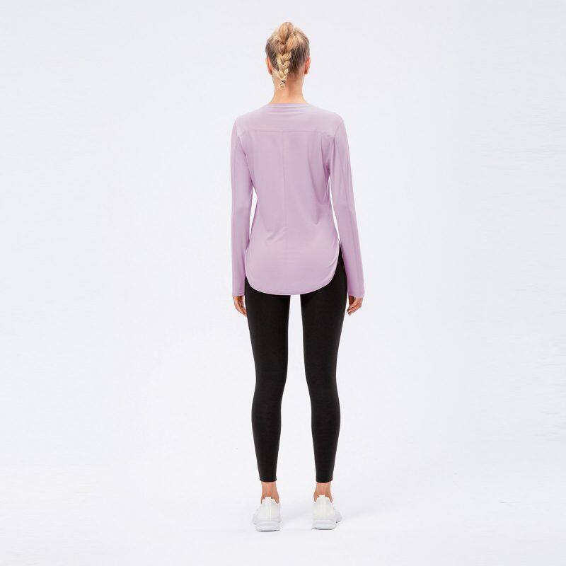 Outdoorbuy Female Yoga Clothing Fork Long Sleeve Sunscreen Sportswear UV Anti-UV Jogging Fitness Loose T-shirt