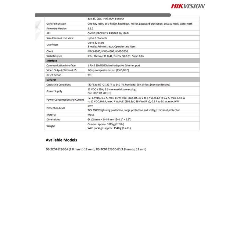 Hikvision DS-2CD1623G0-IZ 2MP EXIR Varifocal Bullet CCTV Network IP Camera