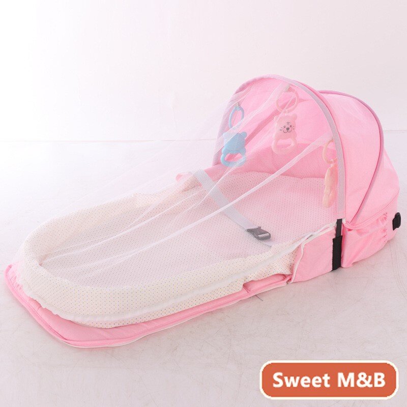 4 In 1 Portable Bassinet Mummy Bag, Foldable Baby Bed, Infant Sleeper with Awning and Mosquito Net for Baby Go Out, Newborn Baby Travel Crib