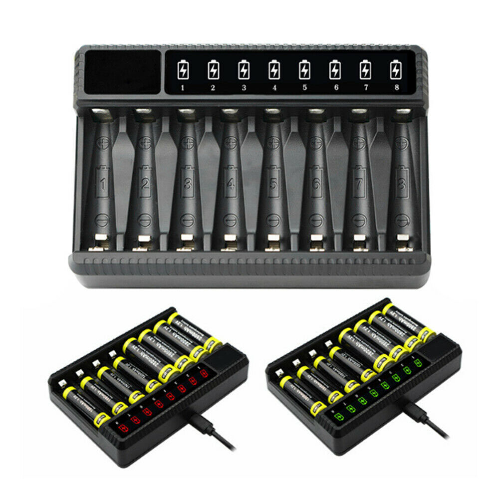 8-slot LED Display Smart Battery Charger Suitable for Aa/aaa Ni-MH Rechargeable Batteries