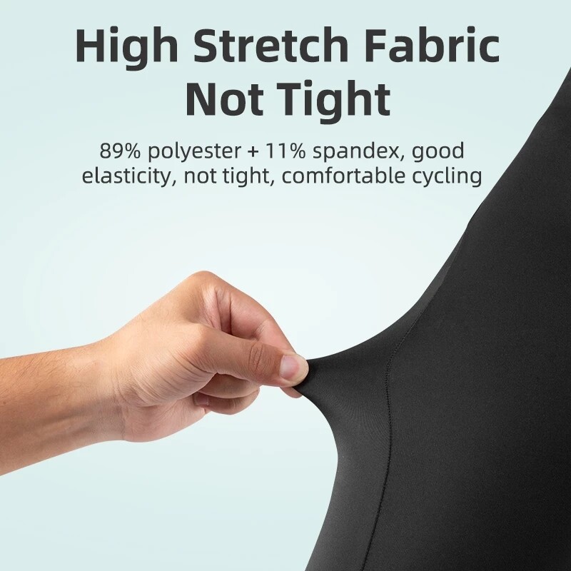 89% polyester + 11% spandex, good elasticity, not tight, comfortable cycling