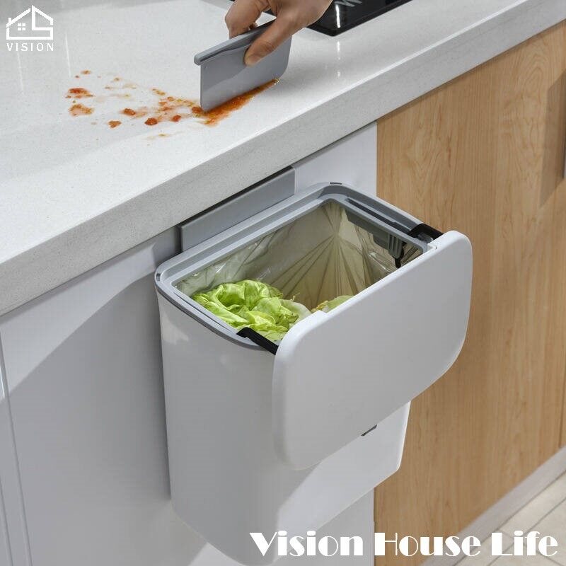 Vision 9L Wall Mounted Trash Can Nordic Sliding Cover Dustbin Kitchen Garbage Can with Cover Large Capacity Trash Can Toilet Bedroom Living Room Creative Trash Can