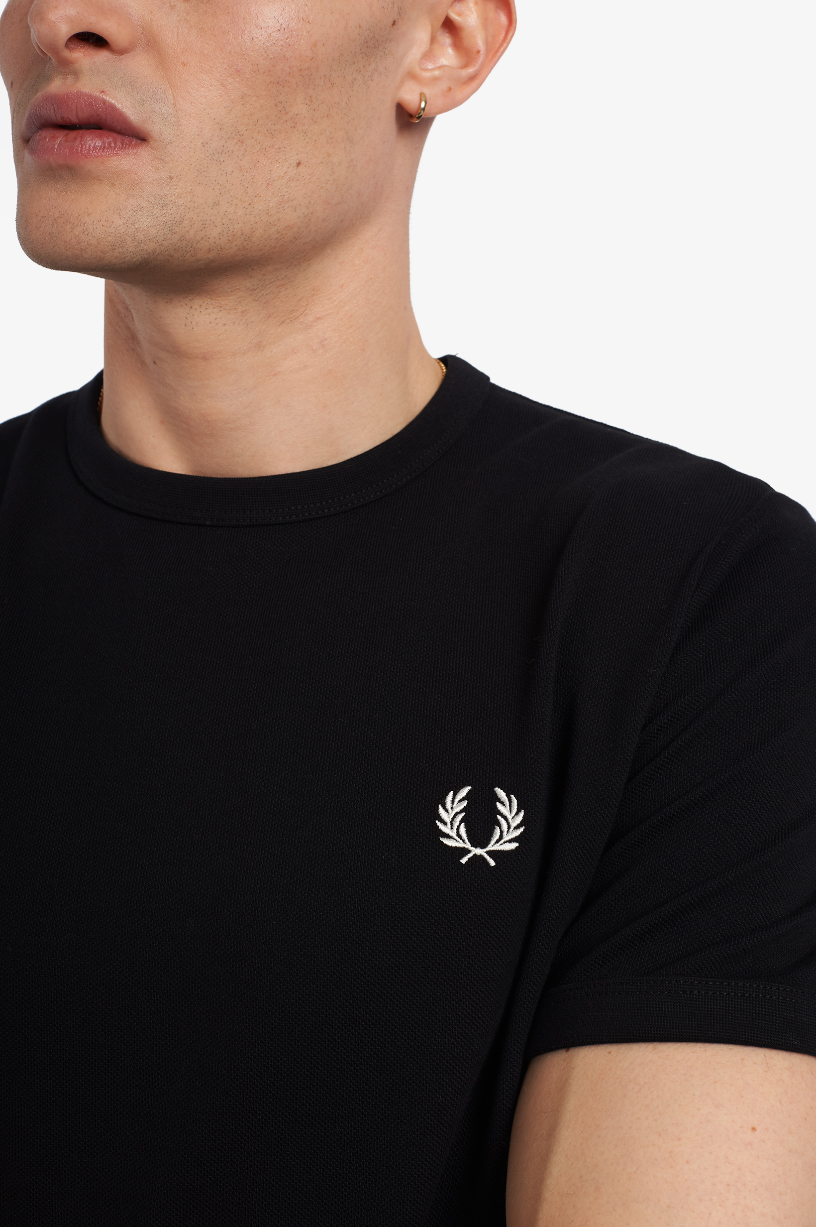 First used on our tricot track jackets in the 1970s, our branded track tape has become something of a signature detail. Designed with our graphic tape stitched inside the side vents, our T-shirt offers a subtle take on the familiar detail. Very very Fred Perry.
