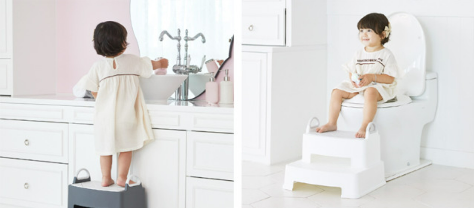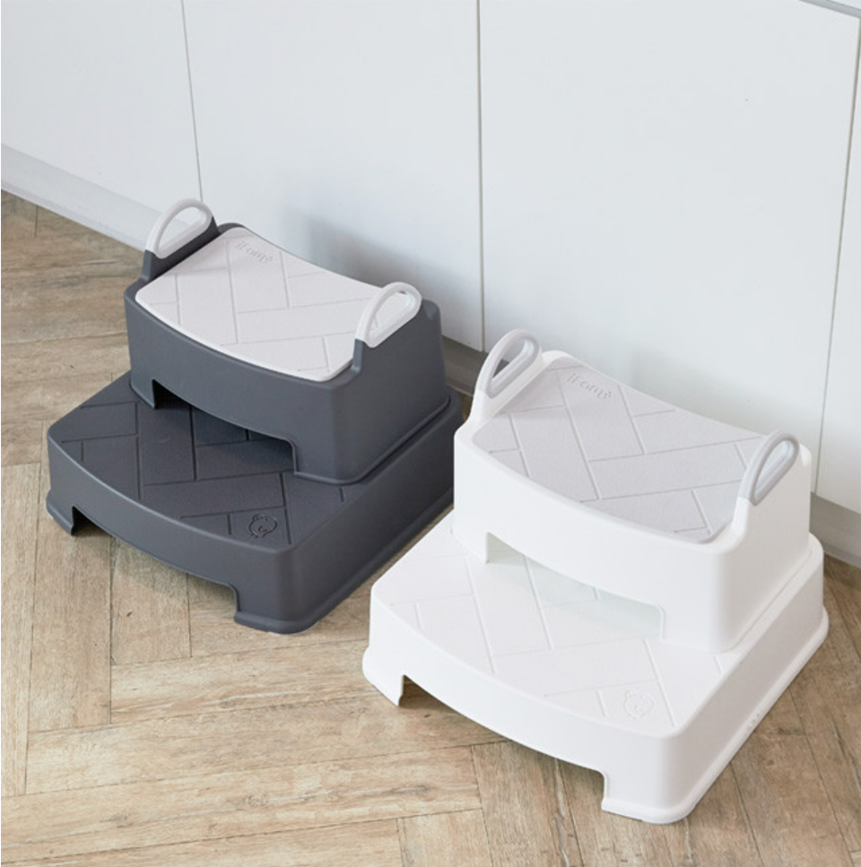 [iFam] Herringbone Baby Step Stool (2 Colors) ● Detachable Two Steps iFam Bath Bathroom Baby Safety ● Baby Toilet ● Height Adjustable Anti-slip Steps for Sink ● Potty Training ● Toddler Stackable Step