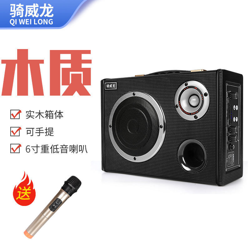 Riding GRAND DRAGON Portable Small Square Dance Audio Outdoor Bluetooth Speaker Karaoke Performance High Power Volume Wireless Microphone Heavy Subwoofer Outdoor Dancing Mobile Trolley Portable Singin