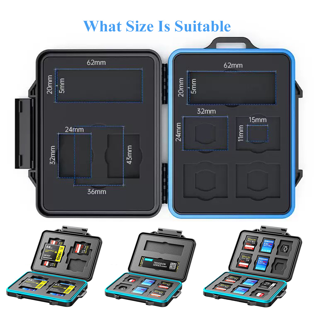 ★Dustproof, Waterproof,full protection---This SD cards holder can protect your cards from destroying, missing. It can protect your cards from drip water, but cannot be used in water and in the rain. Please take care of this before purchasing.