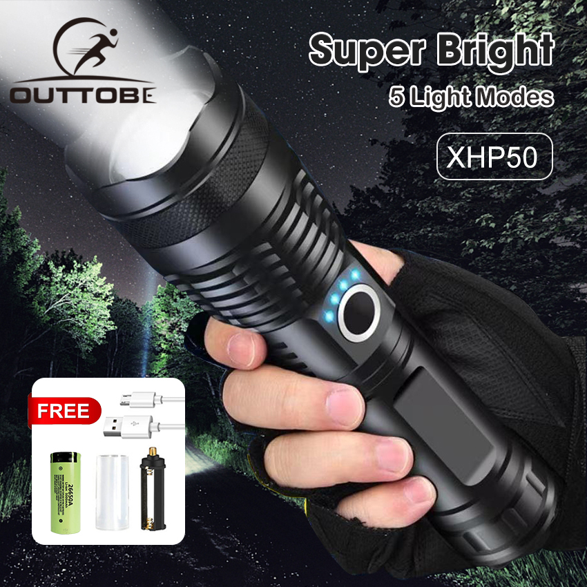 Outtobe XHP50/P70/P90 Power Display Flashlight Telescopic Focusing Flashlight Bright LED Flashlight Heat Dissipation Lights Waterproof Drop-proof Flashlight Outdoor Focusing Torchlight Portable Home