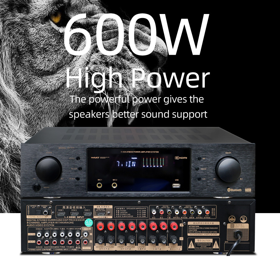 Support Dolby Atmos/Dolby TrueHD/Dolby Digital Plus/DTS X/DTS-HD. Upgrade your home theater with the AV777 provides a truly immersive 3D audio experience, enjoy seamless compatibility with the latest HD and Ultra HD TVs, Blu-ray players and game consoles.