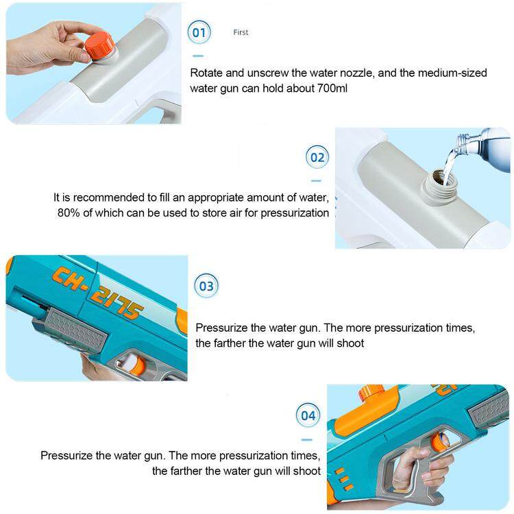 It's time to pick out quality squirt guns for your kids. Our water tank is fitted with waterproof rubber rings. After installation, no water leaks. These high-capacity water guns can spray water continuously for a long time, which you will find very interesting.