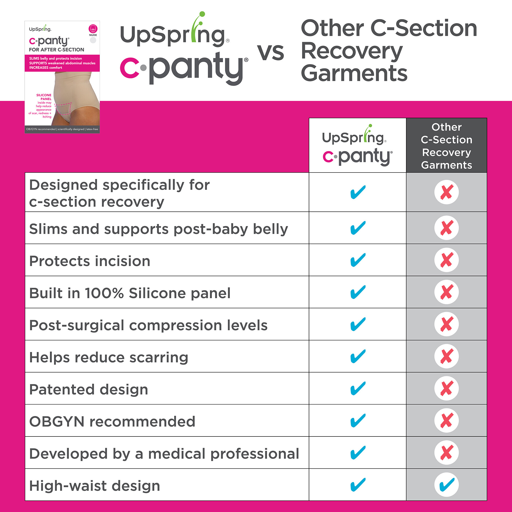 C-Panty is the ONLY panty with Medical Grade Silicone AND Comfortable Compression to add women in c-section recovery.