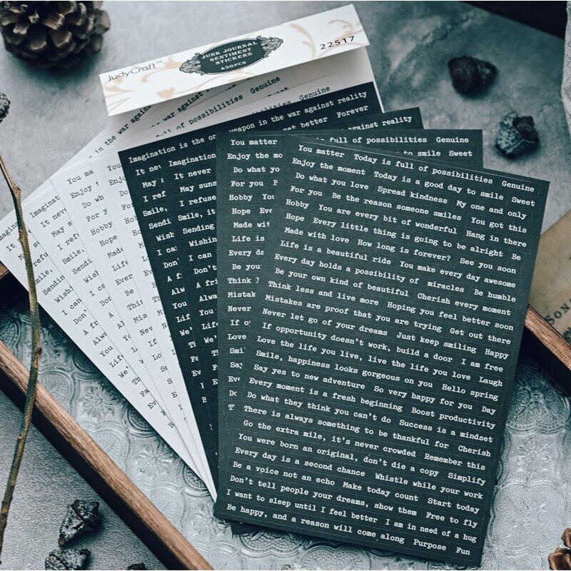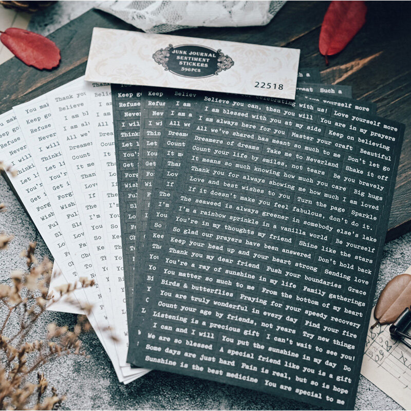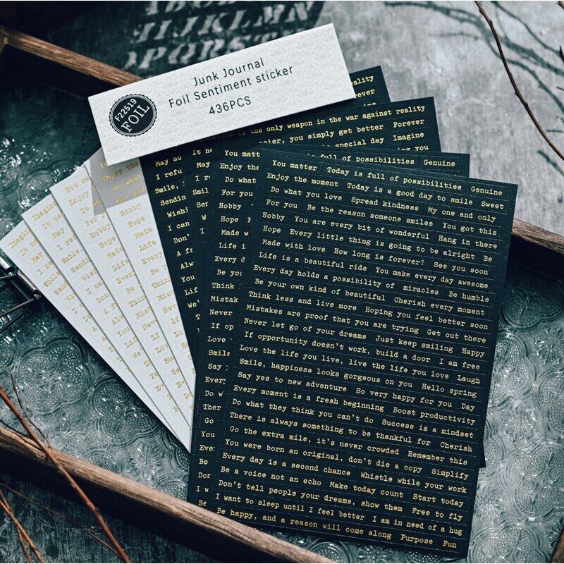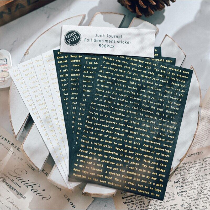 596pcs Foil Phrase Words Stickers Typewriter Sentiment Stickers Junk Journal Planner Vintage Quote Stickers Aesthetic Album Scrapbooking Material Card Making