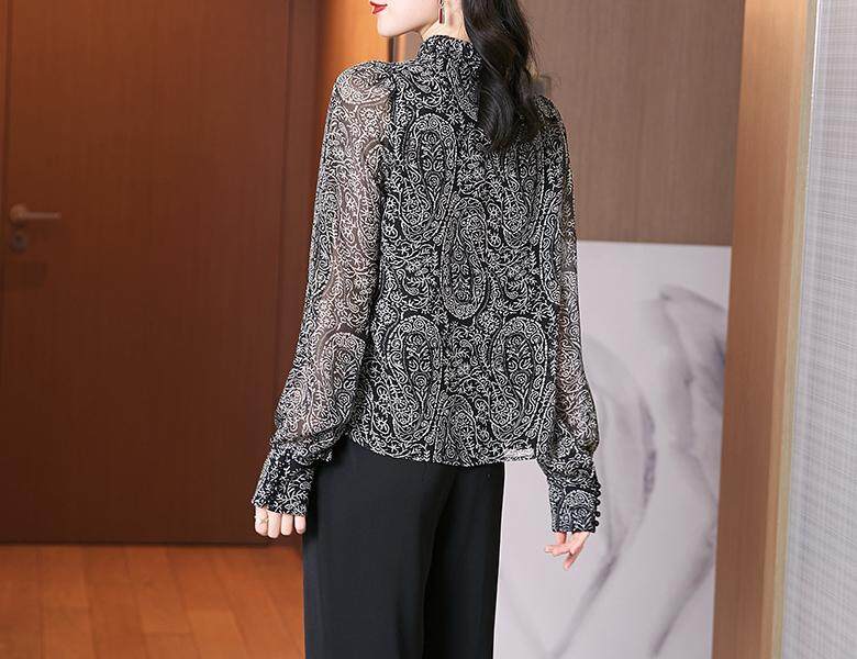 EDQRDQ Women's Floral Print Long Sleeve High Neck Plus Size Georgette Chiffon Blouse