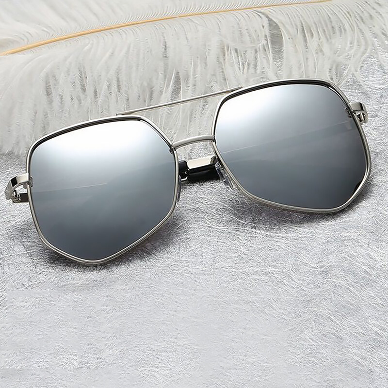 Sunglasses Fashion Metal Shades for Women Sun glasses Gray Polygon Colorful Reflective Sunglasses PTQ