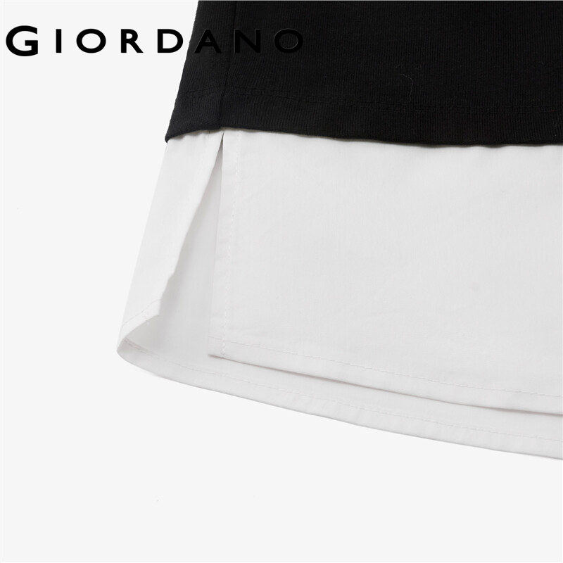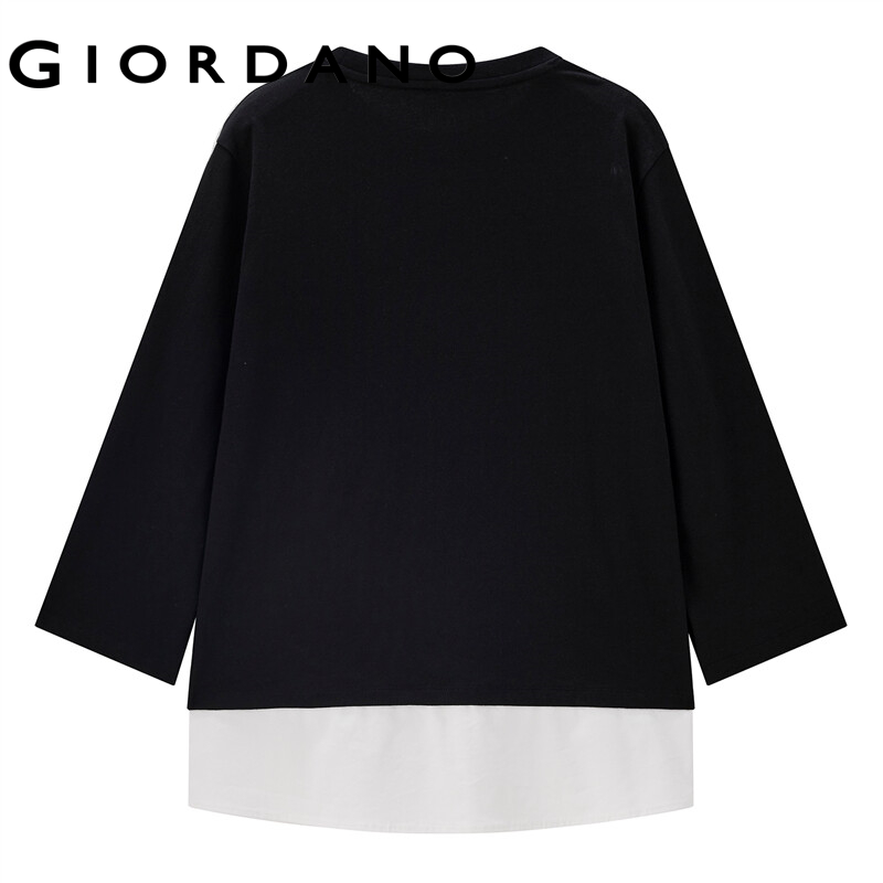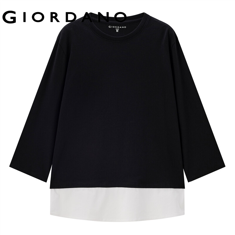 GIORDANO Women T-Shirts Fake 2-Piece Collage 100% Cotton Casual T-Shirts Bracelet Sleeve Crewneck Loose Relaxed Tee 13322775