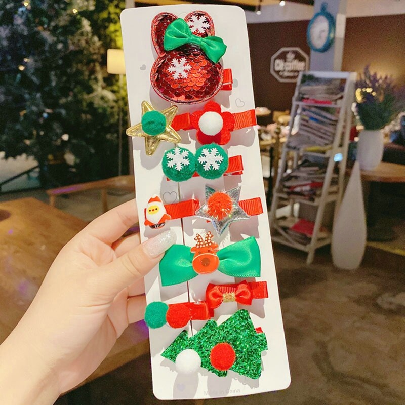 MJartoria 10PCs 2023 New Year Christmas Headdress Autumn Winter Hair Clips Children's Accessories Women's Hairpins