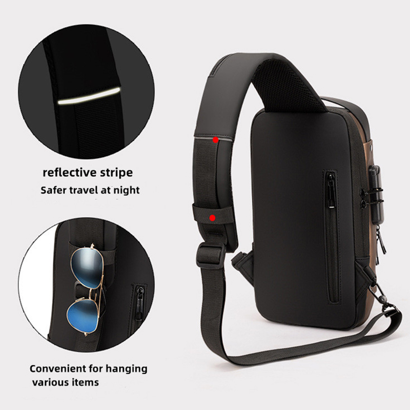 2022 New Leather Men's Chest Bag Crossbody Bag Shoulder Bag with USB Charging Port Large Capacity Multifunctional Anti-theft Password Bag For Sports Car Cool Crossbody Bag