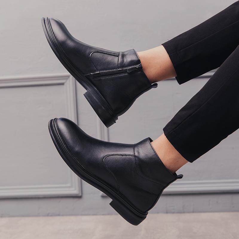 NICUDU Fashion outdoor British Style Chelsea Boots Men Ankle Boots Leather Men Boots Luxury Brand Slip on Man Shoes