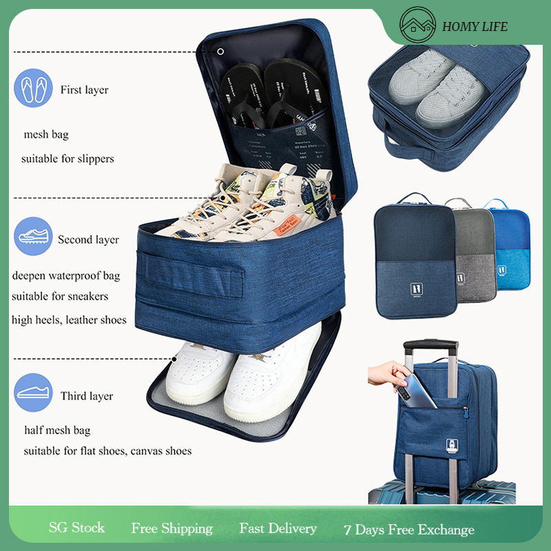 【SG Stock】Portable Shoes Bag Travel Shoes Storage Bags Waterproof Shoe Bag Organiser for Sneakers Sports Shoes Slippers Large Capacity with Zipper Pouch Shoes Storage Bag with Luggage Strap