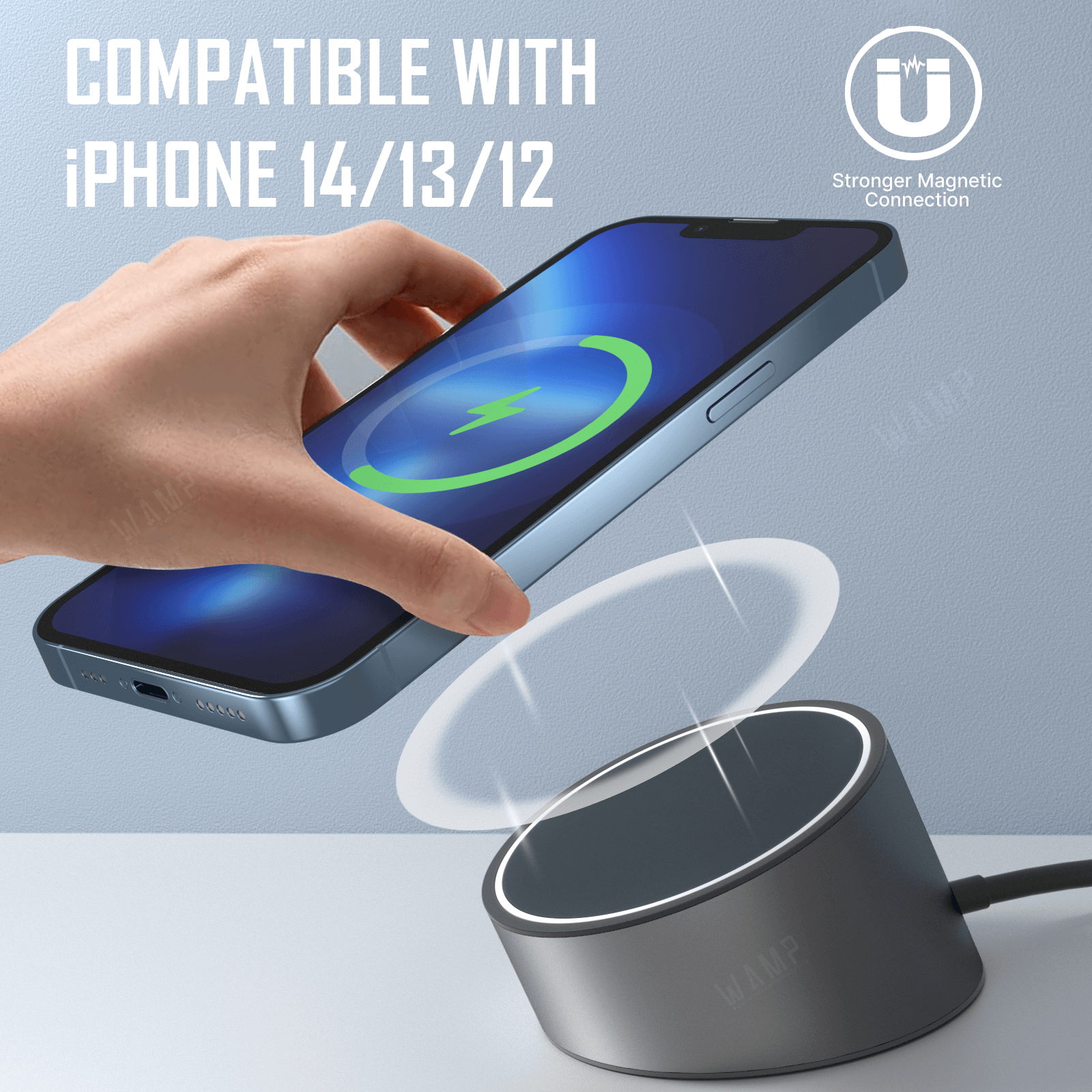Fiddling with your phone's charging cable can be irritating at times. JSAUX 15W Magnetic Wireless Charger uses a strong magnetic array to ensure your iPhone 14/13/12 is in the perfect position for charging and provide convenient charging for situations when you don’t need a super-fast recharge.