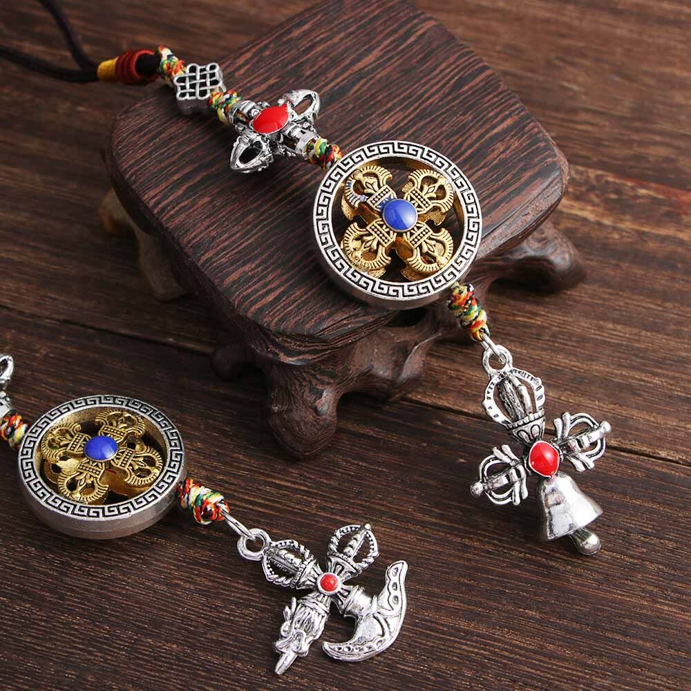 BIRONG Vintage Couple Gifts Braied Rope Dispelling Evil Car Key Chain DIY Ornaments Keyring Pendant Mobile Phone Lanyard Cross Vajra Pestle Tag Pentant Car Pendant Tibetan Tantric Auspicious Knot Cros