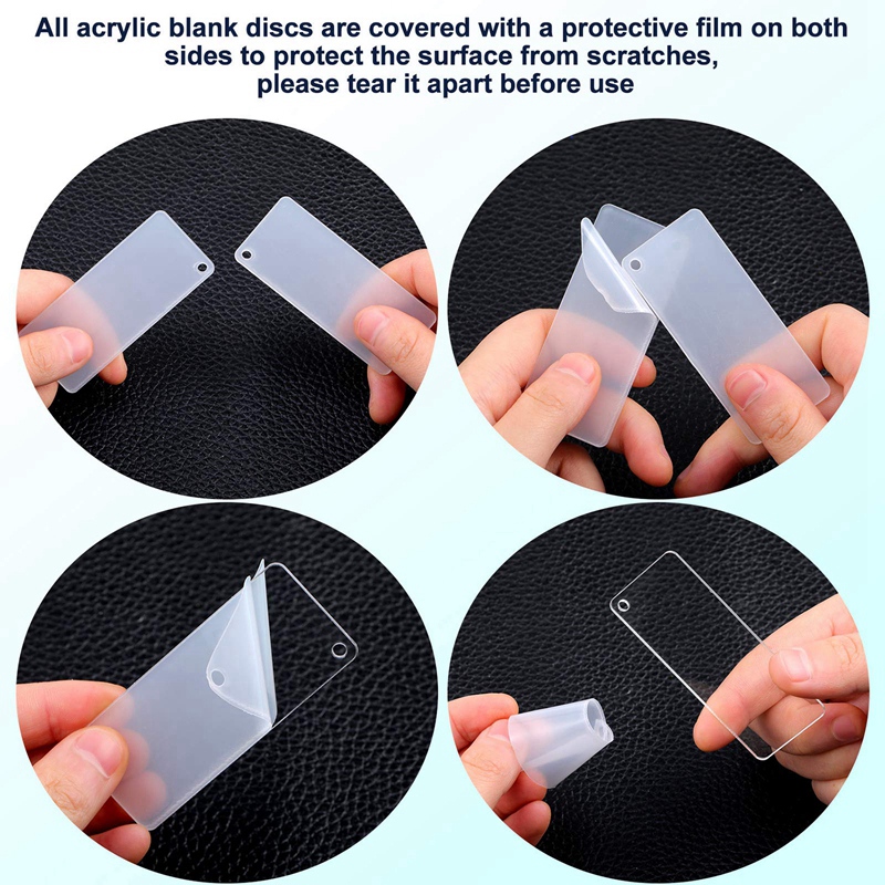 [High quality Acrylic Blanks]The rectangle acrylic blanks are made of high quality acrylic materials , the size is 3x7cm; easy to DIY patterns on them; before use, please peel off the protective layer.