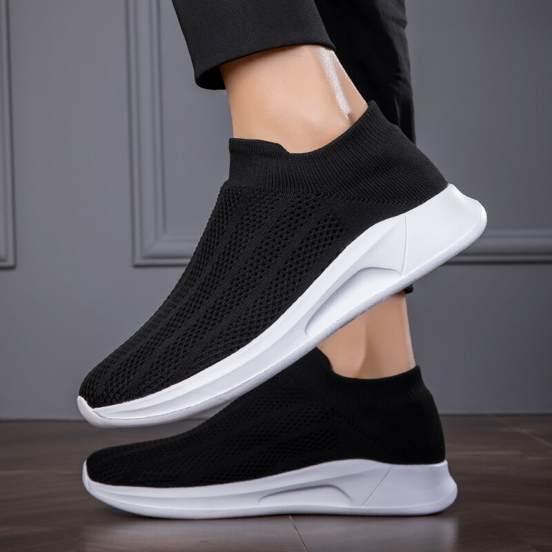 Mesh Surface Shoes Men's Summer Breathable Thin Mesh Surface Hollowed Large Mesh Men's Shoes Casual Running Black Flyknit Sneaker