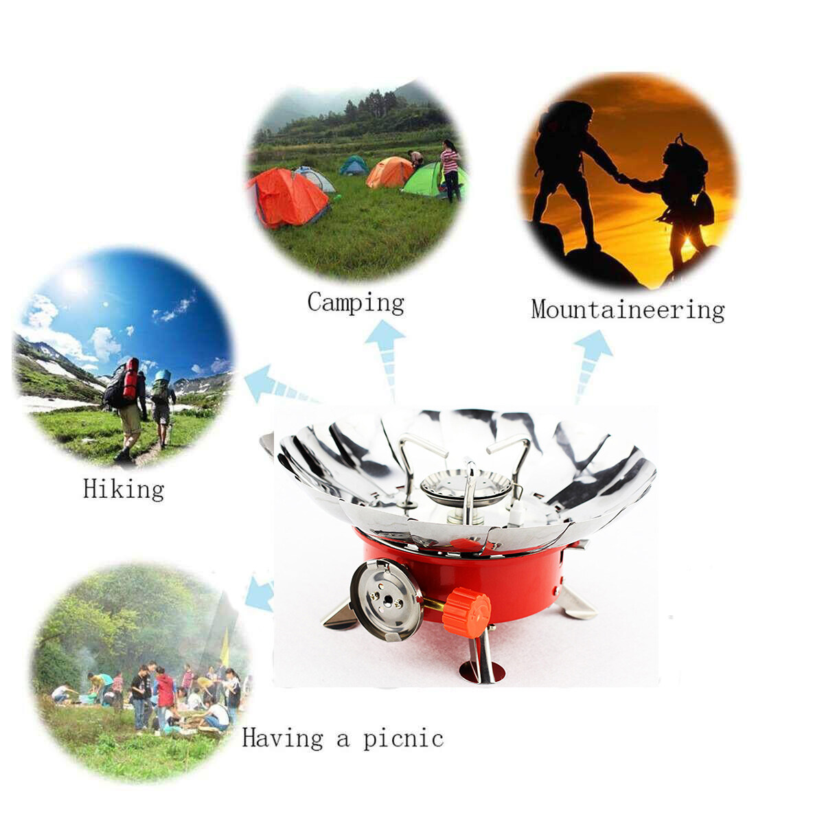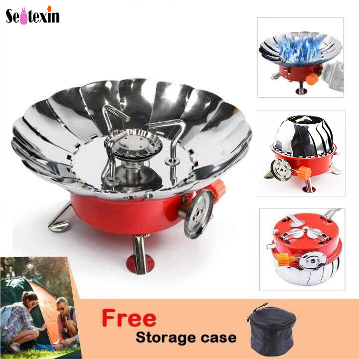 Sentexin Portable Windproof Camping Stove Stainless Steel Outdoor Gas Burner for BBQ/Fishing/Picnic