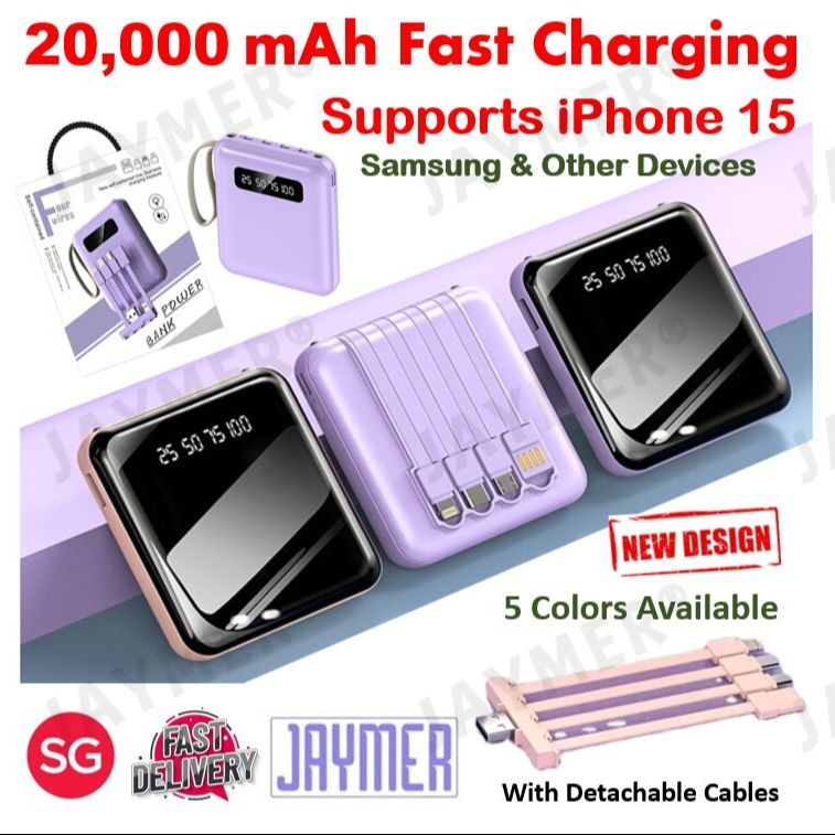 SG 4in1 Portable Fast Charging 20000 30000 mAh LED Power Bank Detachable Cable Compatible Apple iPhone 15 14 13 Samsung S23 S22