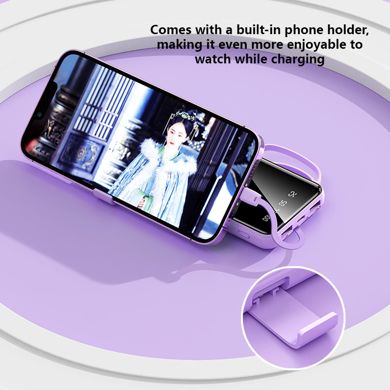 4-in-1 Portable 20000mAh Fast Charging Power Bank Built In Cables with Phone Holder