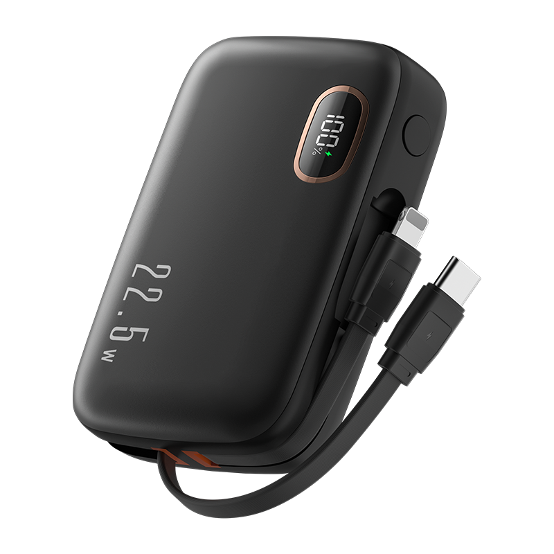 KUULAA 10000mAh Power Bank Mini PowerBank Portable Charger PD Fast Charging Built in Two Cables Type C L Compatible for iPhone 15 14 13 12 Huawei Xiaomi Samsung