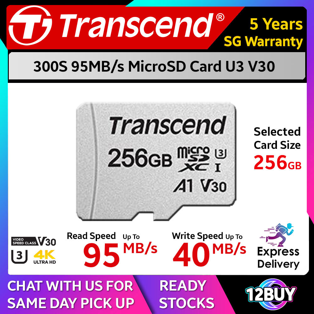 Transcend 300S MicroSD Card 95MB/s C10 16GB A1 32GB 64GB U1 128GB 256GB 512GB U3 Express Door Delivery 3 to 7 Days