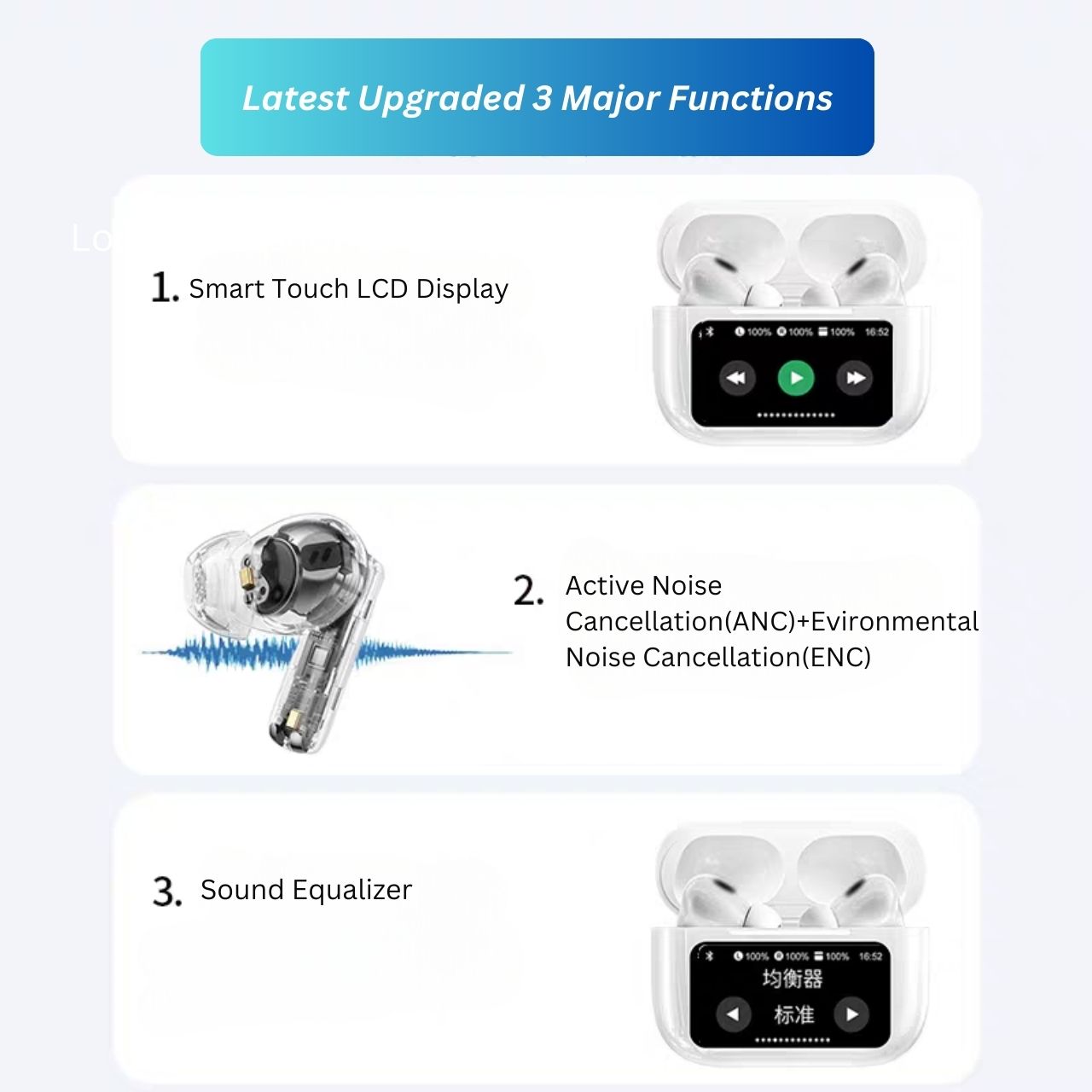 -Ambient sound effects: ANC mode on/ANC mode off/ ANC transparency mode
