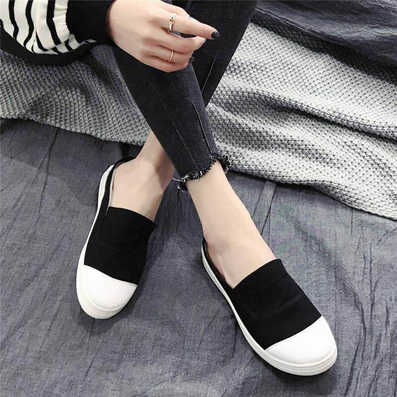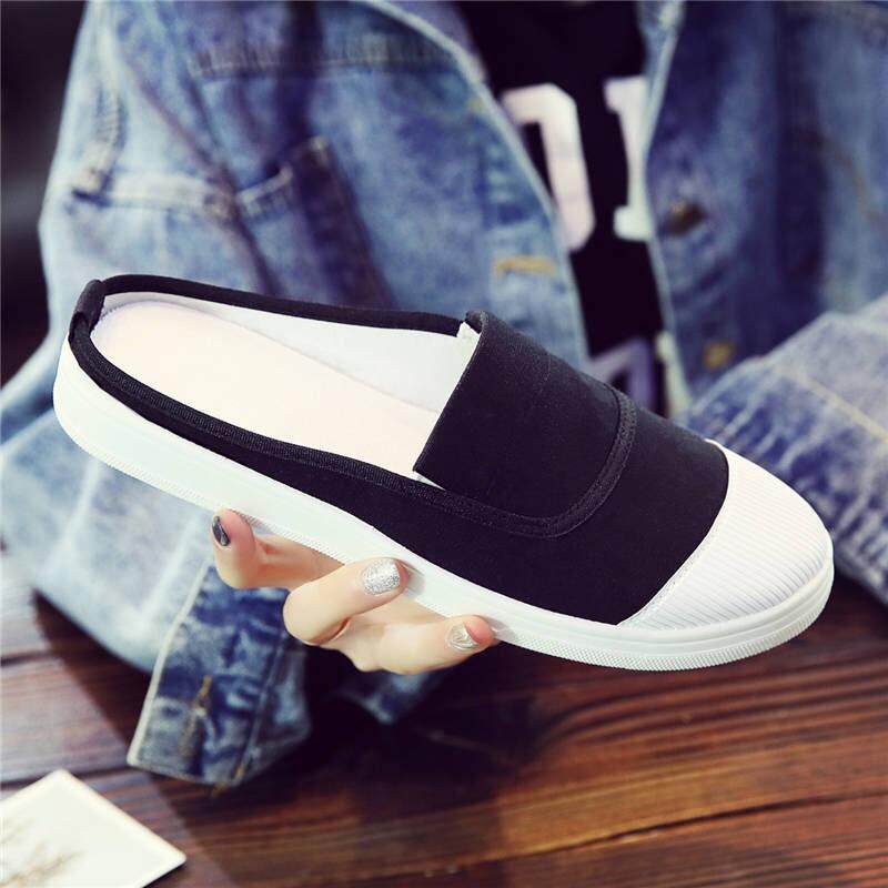 Half-drag canvas shoes female spring Korean version without heel slippers