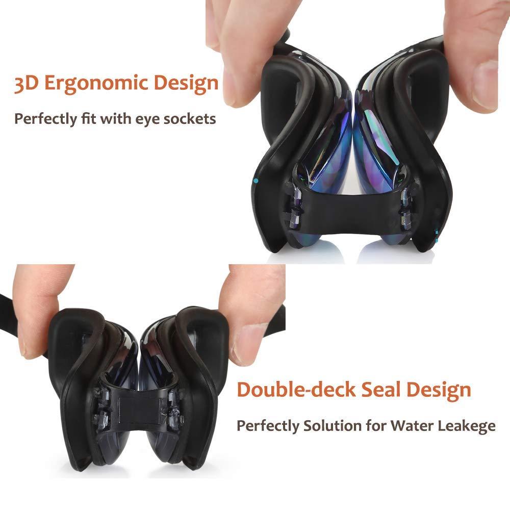 Otter Pro Triathlon Mirrored Swimming Goggles, Swim Goggles with Earplugs and Nose Clip Set for Unisex Adult Men Women Youth Kid, Anti Fog