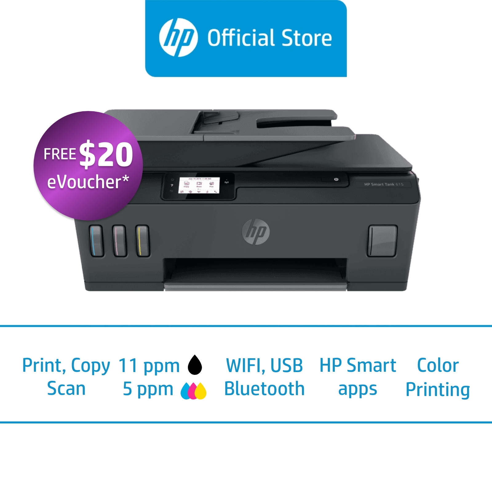HP Smart Tank 615 Wireless All in one / Multifunction Color Inkjet Printer / Cartridge Supported / Mobile Print / ADF / Duplex / One Year Warranty