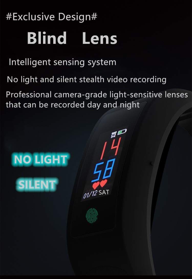JDM Fitness Bracelet with Hidden Camera 1080P Noise Reduction Recording Bracelet Smart Watch Activity Tracker Sports Watch 32GB
