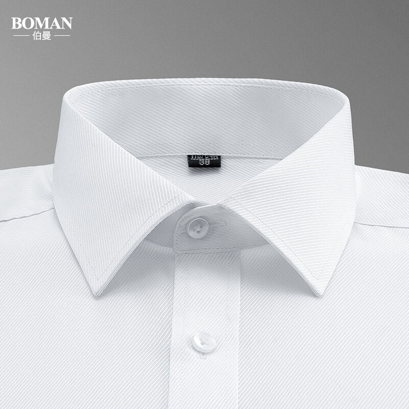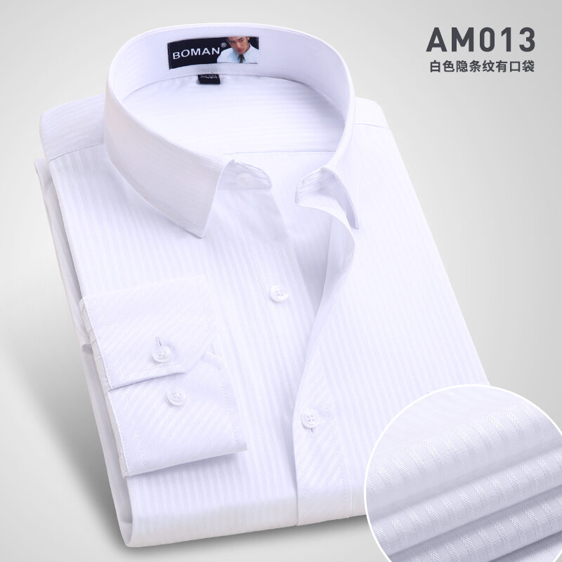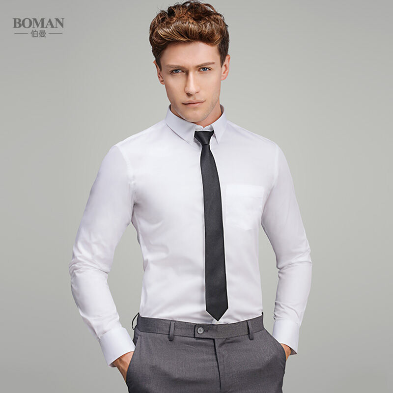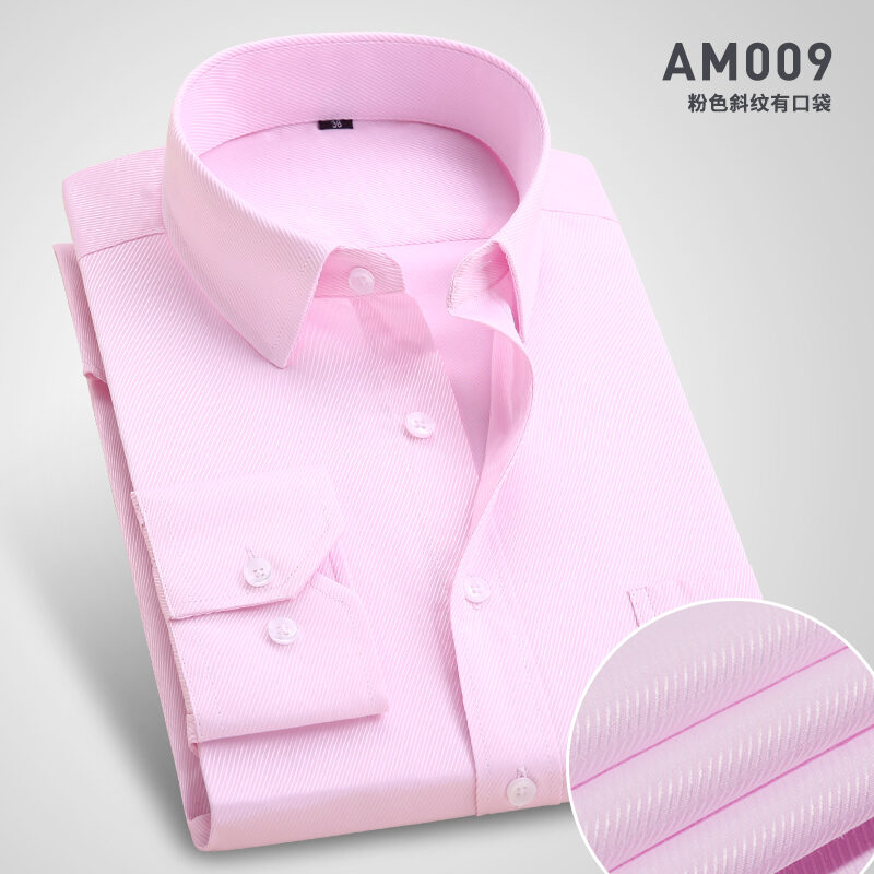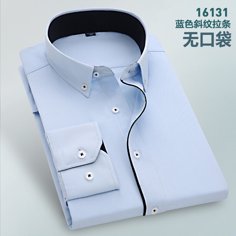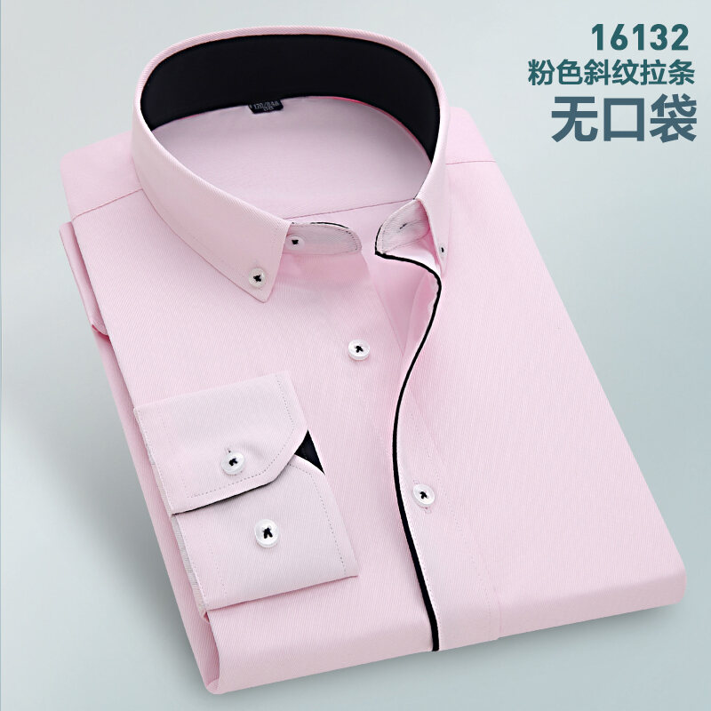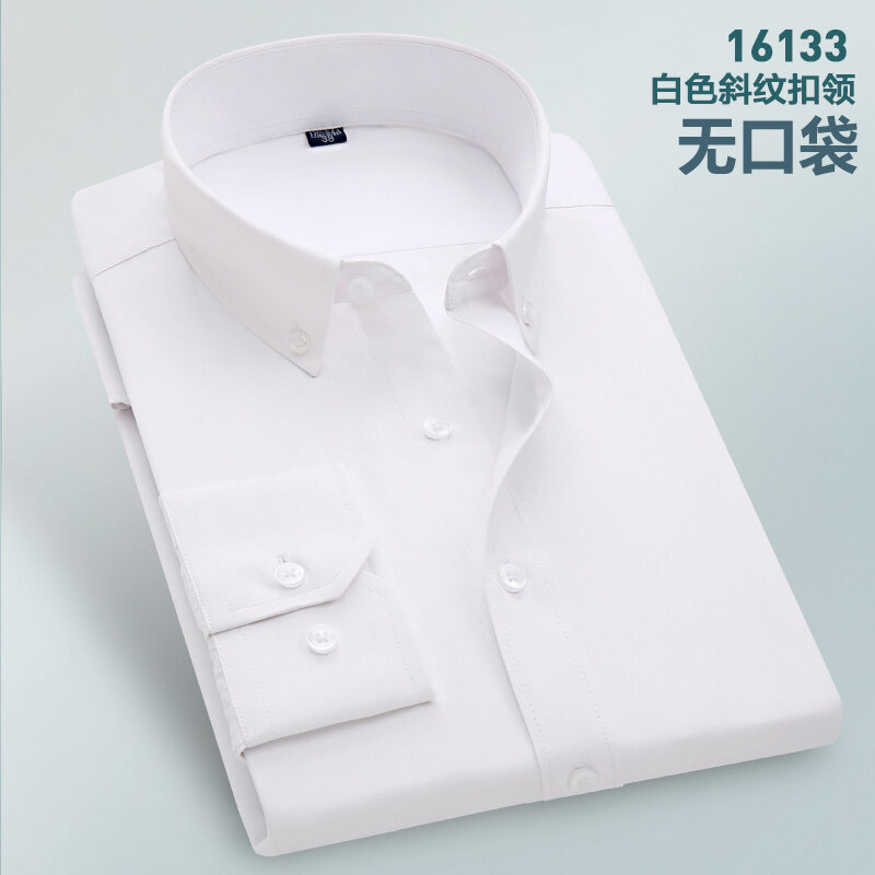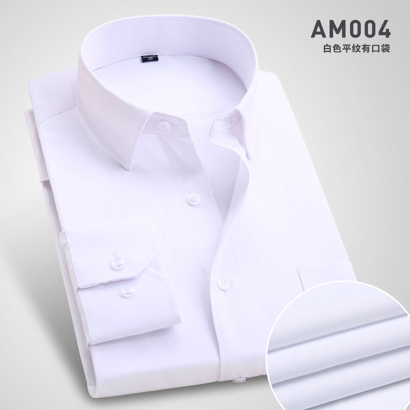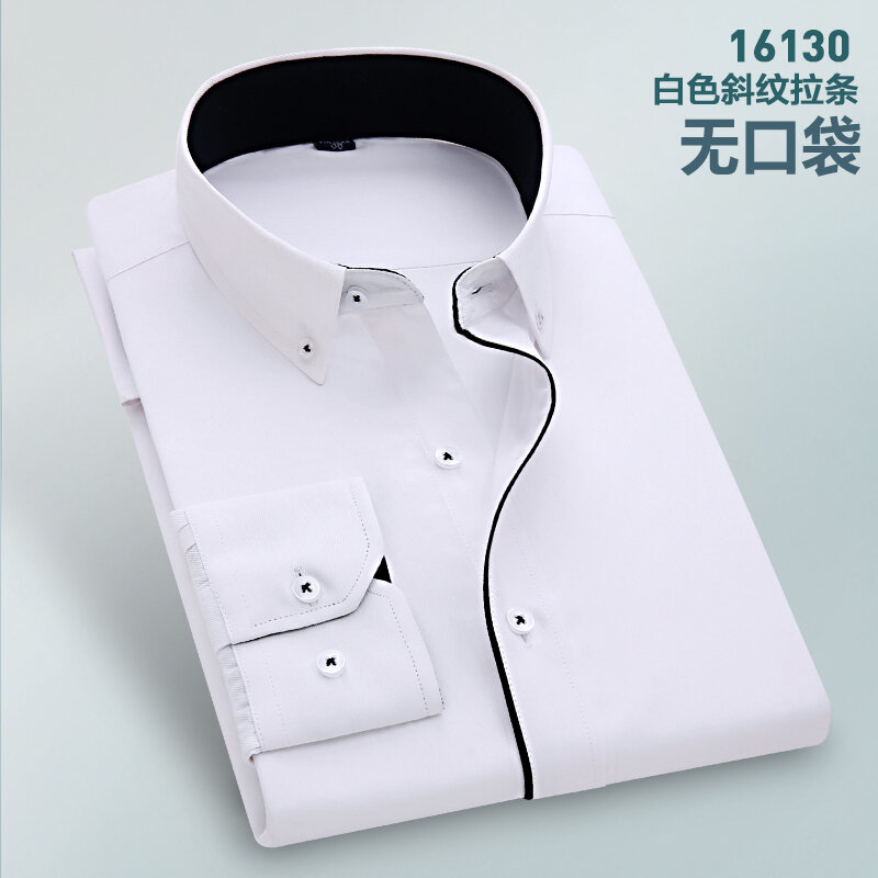Spring Long-Sleeved Shirt Men's Youth Business Professional Workwear Solid Color White Shirt Slim-Fit Fleece-Lined Warm Formal Wear Inch
