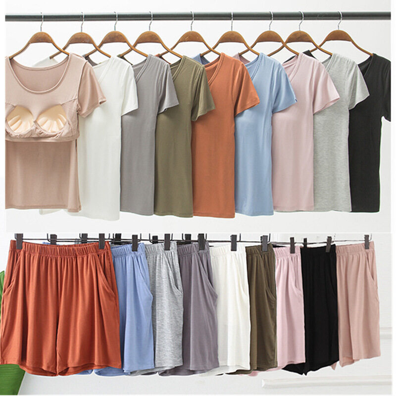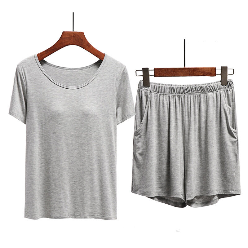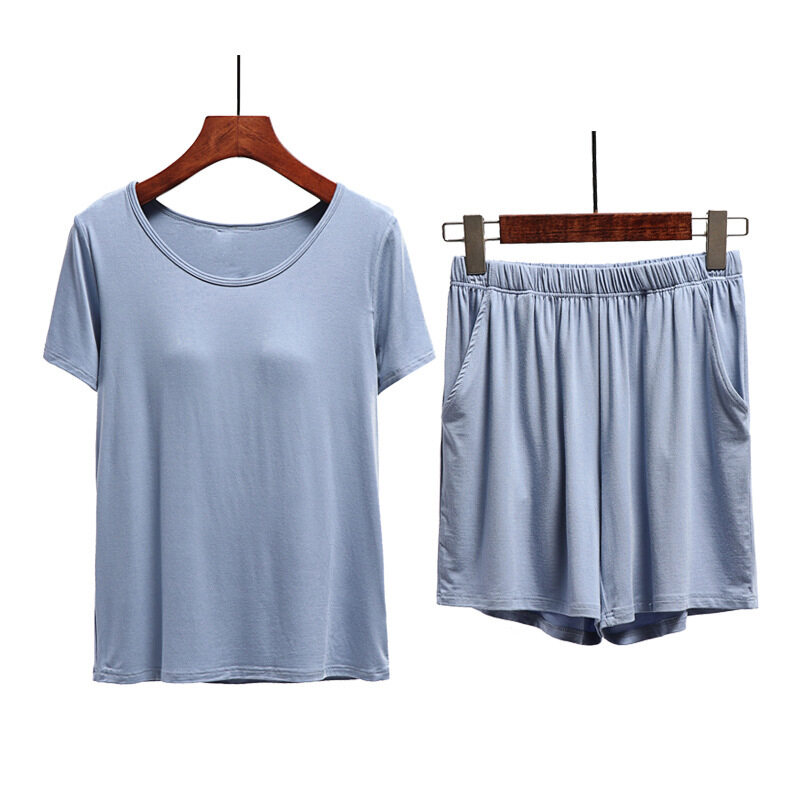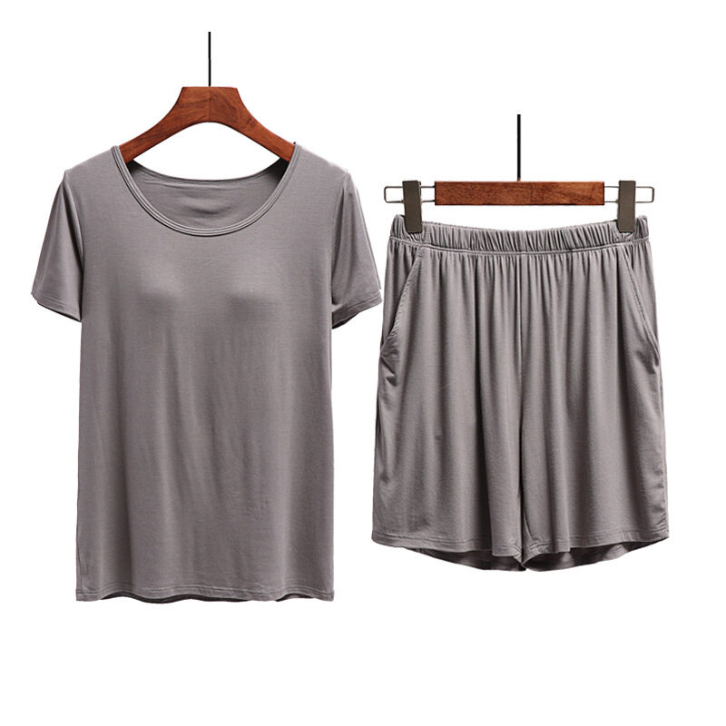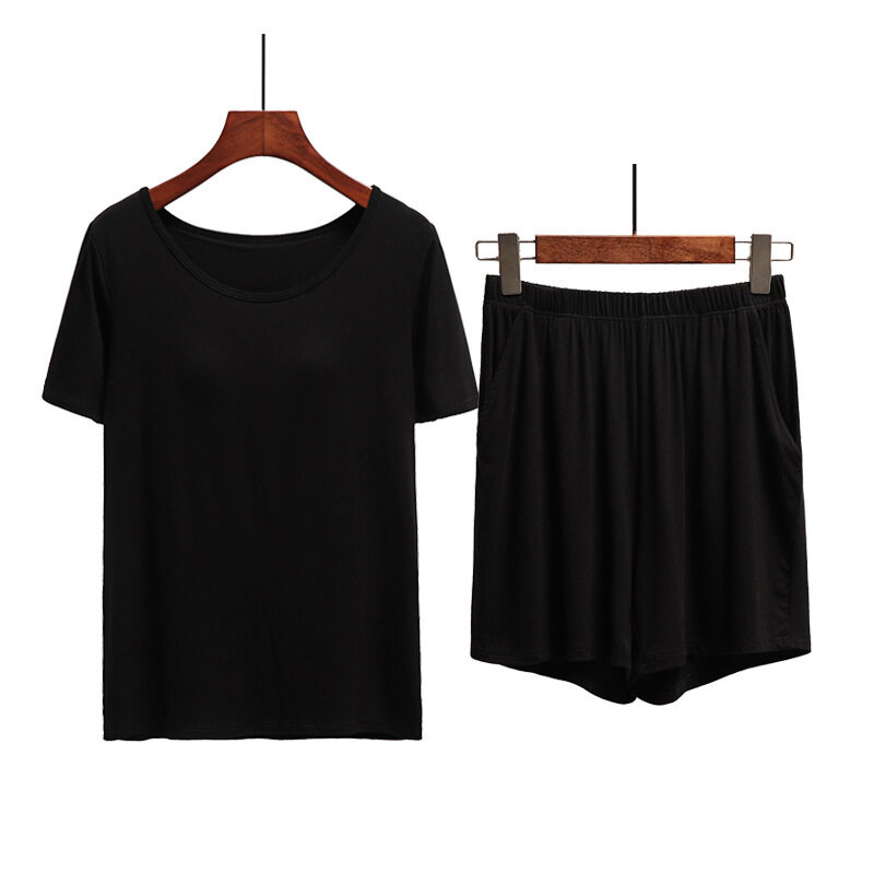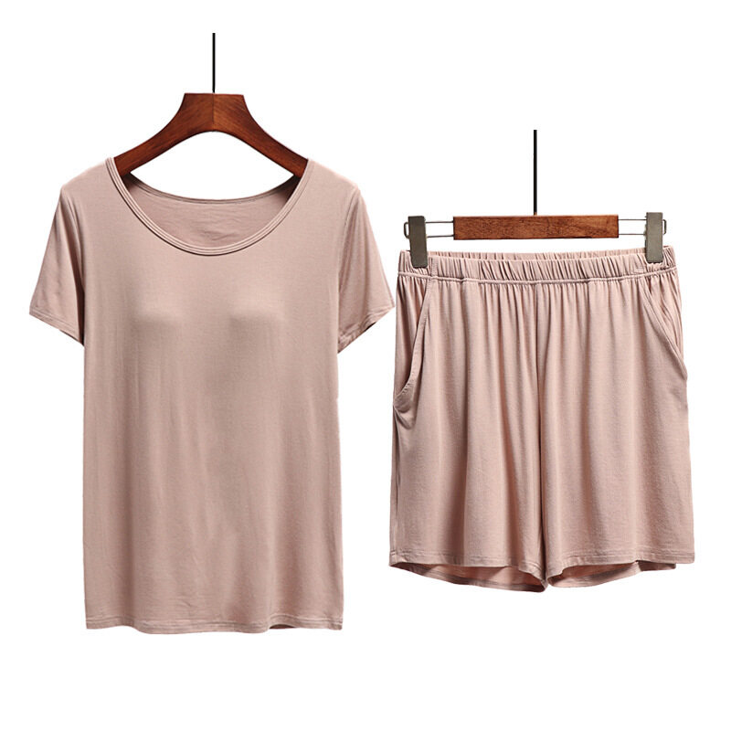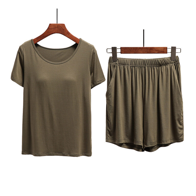 1 Set Summer Modal Short-sleeved Shorts Women's With Chest Pad Tops Thin Home Wear Pajamas Female Two piece set With Pockets Cotton Casual Gym Yoga Elastic Waist Short Plus Size Loose Comfortable brea